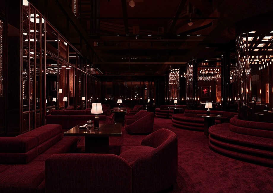 Interijer spaja tamne tonove, crvene refleksije i čelične naglaske, stvarajući dramatičnu, ali profinjenu atmosferu. Ovdje nijedan detalj nije slučajan. Stolice pozivaju na duge razgovore, svjetla se prilagođavaju glazbi, a materijali reflektiraju pokret i toplinu prostora. Belingardi nije stvarao klasičan klub, nego ambijent koji pulsira, restoran koji diše poput pozornice i klub koji zadržava eleganciju intimne večere.