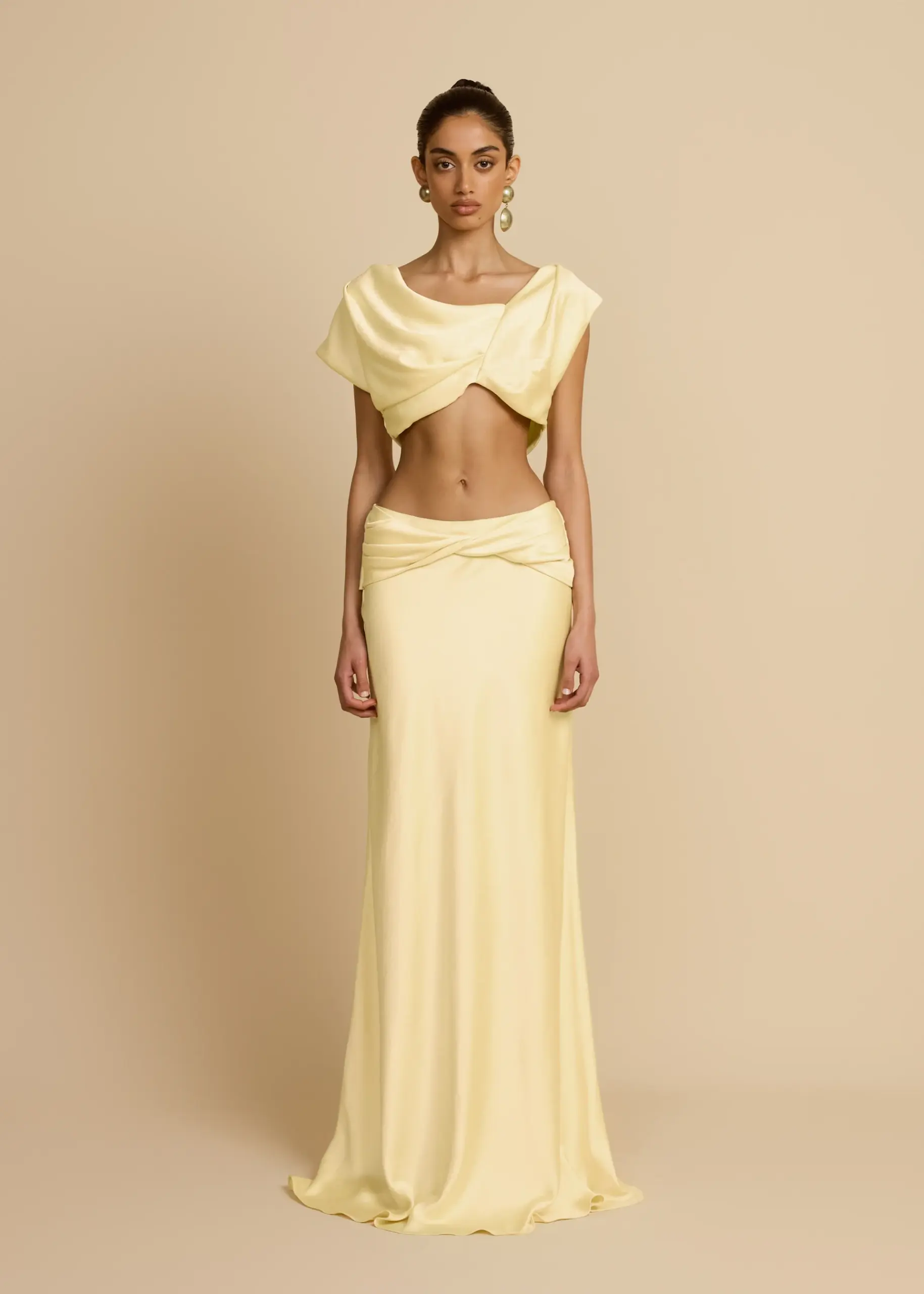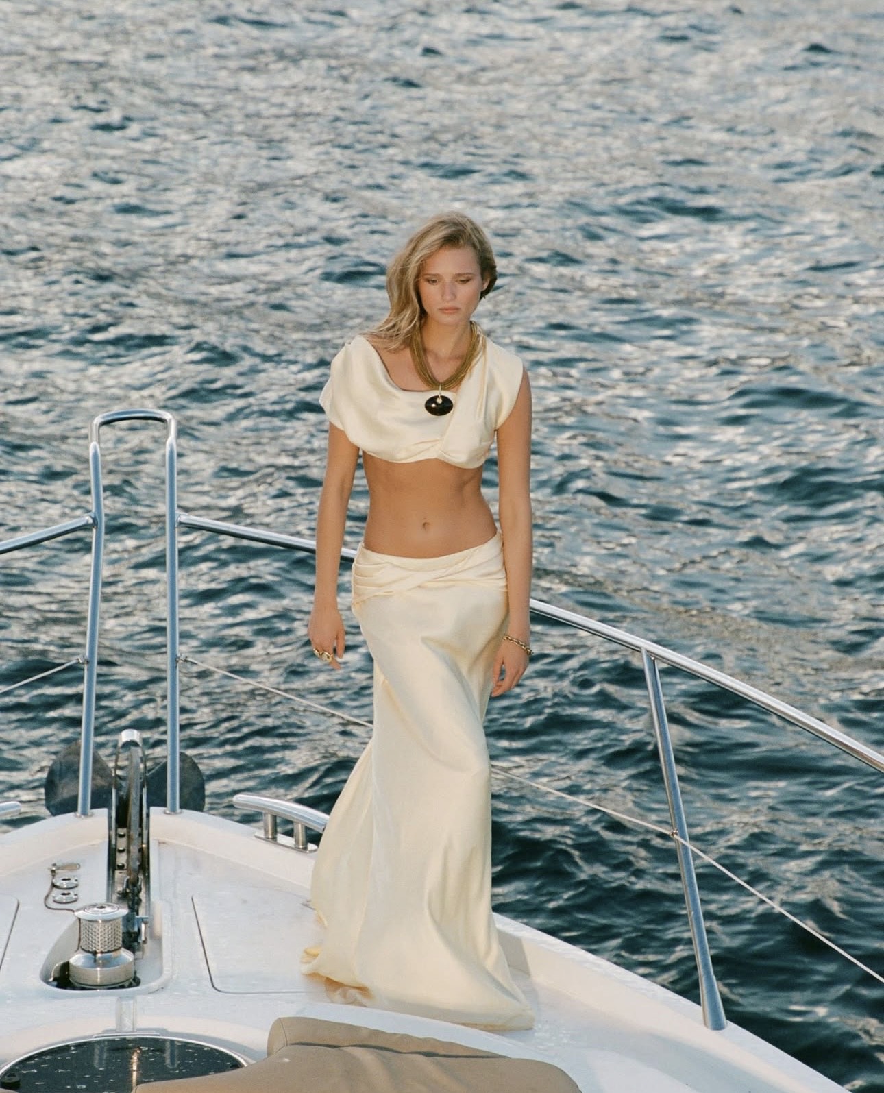 U novoj se kolekciji nalaze i dva modela koja su idealna za djevojačku večer ili neko drugo događanje prije vjenčanja, kao i dva kompleta s maksi haljinama i crop topovima – jedan takav je već nosila i Alexandra Saint Mleux.