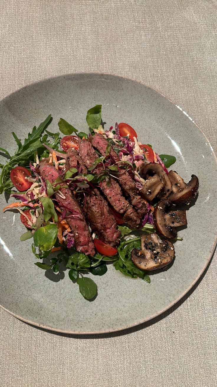 @healthbydia Steak Salad Good cut of steak, creamy avocado, chickpeas for staying power, and a chimichurri-style dressing that pulls it all together. On the table in 20 minutes. Salad Ingredients: Cucumber · Cherry tomatoes · Red onion · Chickpeas · Avocado · Feta · Grass Fed Steak Dressing Ingredients: Parsley · Cilantro · Garlic · Oregano · Red wine vinegar · Extra virgin olive oil The dressing is the move here — the vinegar and fresh herbs cut through the richness of the steak perfectly. Protein, healthy fats, fiber. Nothing unnecessary. #steaksalad #antiinflammatory #highprotein #wholefoods #wholefoodsdiet