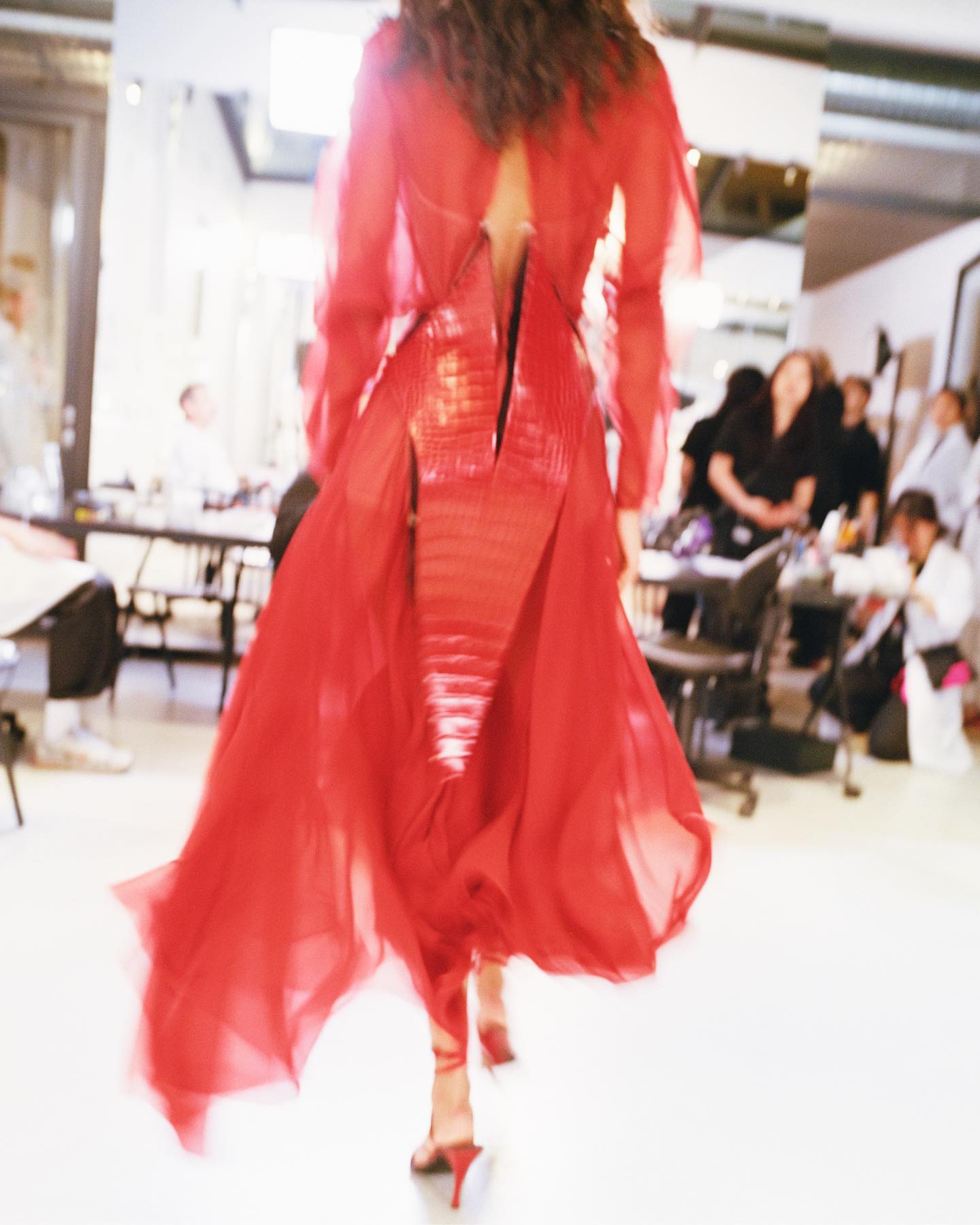 Prije same revije, oduševila nas je pozivnica koju su uzvanici dobili na svoje adrese – u kovčegu su gostima stigli dijelovi kožnatog korzeta, s uputama kako ga sastaviti. Kreativni direktor kuće, Pieter Mulier, opisao je ovu pozivnicu kao “labuđi pjev” – posveta taktilnoj izradi i intimnosti. Ovo je, naime, posljednja kolekcija pod vodstvom Muliera, jer u svibnju ove godine započinje svoje novo poglavlje u kući Versace.