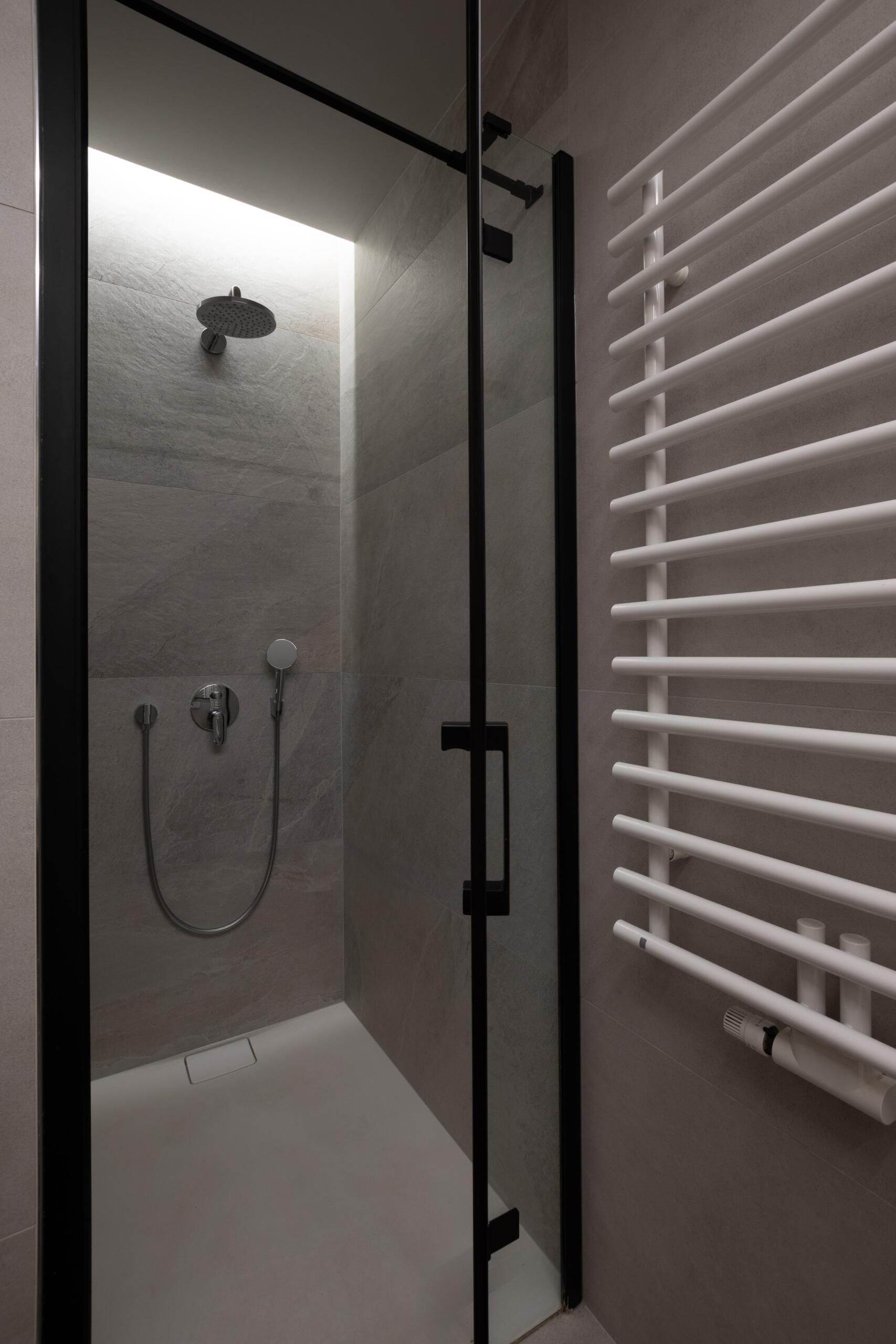 Projekt kuhinje bio je, također, pun izazova. Visoki elementi morali su sakriti ventilaciju, a spuštanje stropa u kuhinji omogućilo je postizanje estetskog efekta okvira. U boravku je, pak, smještena neobična, ali vrlo atraktivna niša s policama, koja je ujedno služila kao elegantan detalj za pohranu.