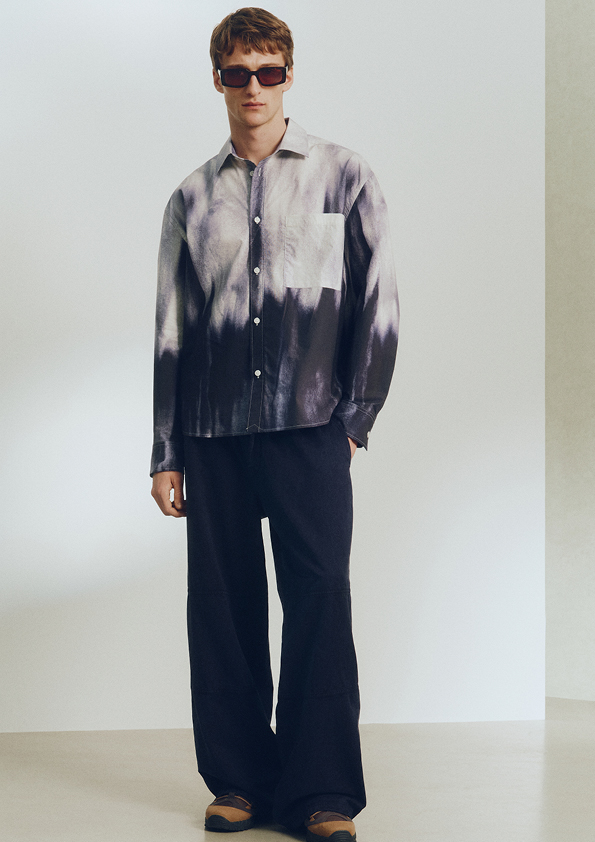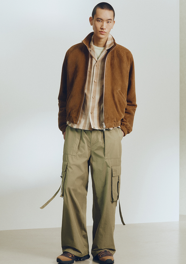 Kolekcija se čita kao pažljivo uređena putna selekcija: košulje s prednjim džepovima, majice i pleteni prsluci čine osnovu, slojevito kombiniranu s opuštenim blejzerima i laganim jaknama. Cargo hlače, bermude ispod koljena i plisirane hlače koje se blago sužavaju oko gležnja oblikuju izduženu, ležernu siluetu sezone. Krojevi su širokih proporcija, s košuljama nenametljivo izvučenima ispod jakni i pletiva, što donosi vješto postignutu lakoću kroz opuštene proporcije i promišljeno slojevanje.
