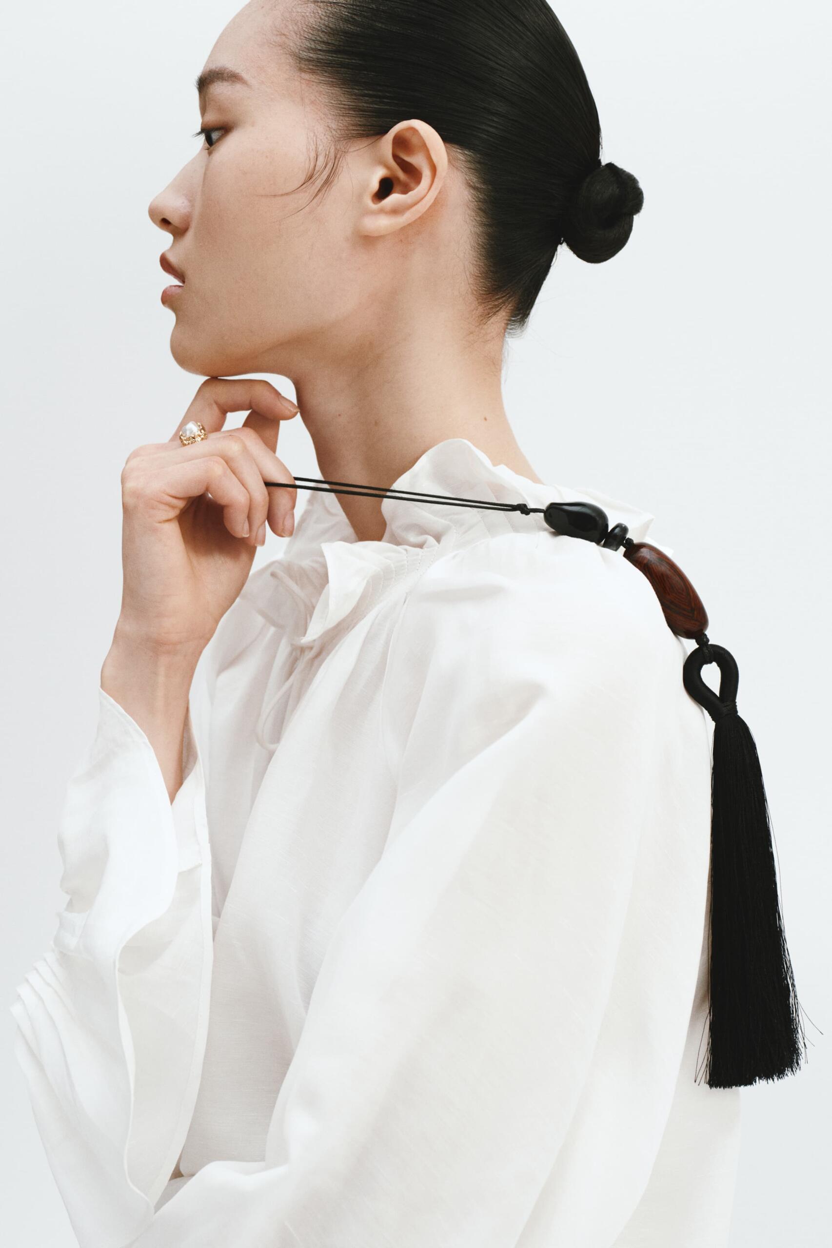 Oštro krojena odijela od lanenih mješavina donose sofisticiranu, modernu eleganciju. Istaknuti komadi uključuju topove s detaljem marame, suknje koje se nose preko hlača, skulpturalne asimetrične bandeau topove i jakne s upečatljivim zakrivljenim prednjim dijelom ukrašenim gumbima. Moderan pristup athleisure stilu predstavljen je s dozom teksture i zanatskog izraza.