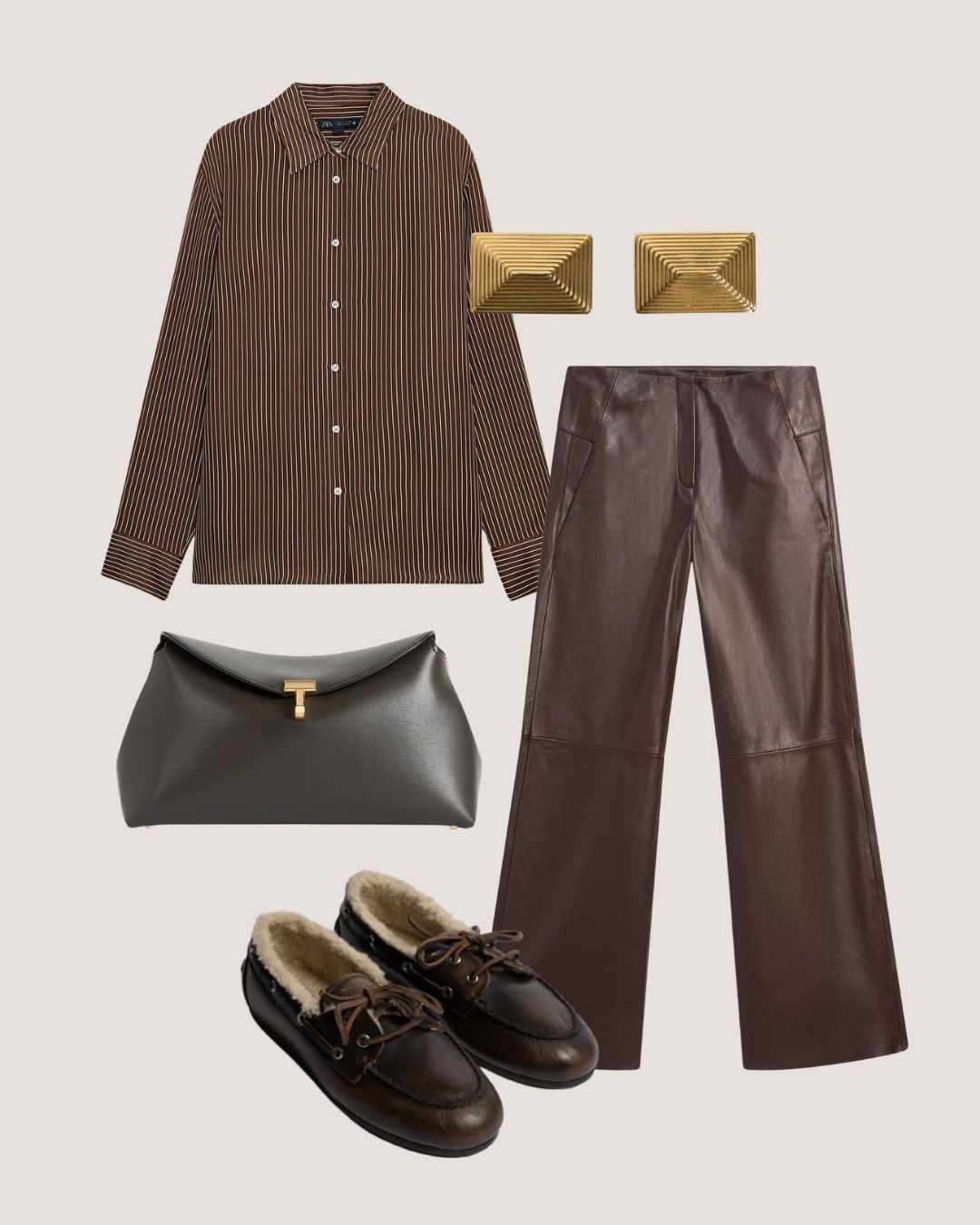 Kožnate hlače sjajno se slažu s casual komadima poput oversized prugaste košulje i brodarica s ovčjim krznom. Kako biste dodali dozu chica jednom outfitu u kojem ćete se najprije osjećati ugodno, predlažemo da iskombinirate upečatljive naušnice i it torbicu – poput hit modela kuće Toteme T-Lock! Ovo je styling u kojem ne samo da ćete izgledati u skladu s trendovima, već ćete bezbrižno i sa stilom obavljati sve svakodnevne zadatke.
