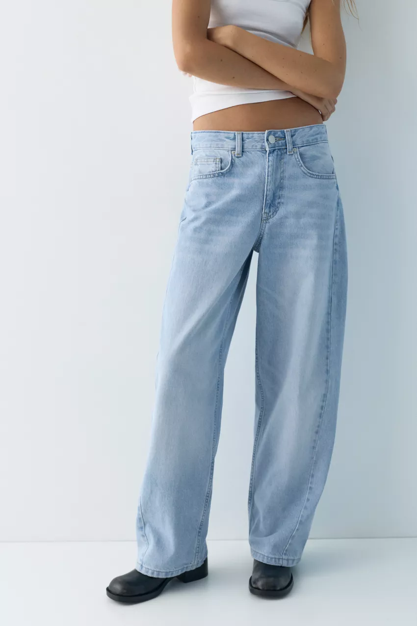 Nama je za oko zapeo novitet iz ponude španjolskog brenda Pull & Bear, koji će zasigurno biti hit. Model je predstavljen u barrel kroju s blago zaobljenim nogavicama, svijetlo plave je boje, što ga čini savršenom bazom za slojevite kombinacije. Široke traperice možete nositi s oversized sakoom, s elegantnim topom i štiklama za večernji izlazak ili uz jednostavan t-shirt i tenisice za casual dnevni look. Ovaj komad evocira trendovski ležeran, ali i chic stil, a vam donosimo tri prijedloga kako ga stilizirati.