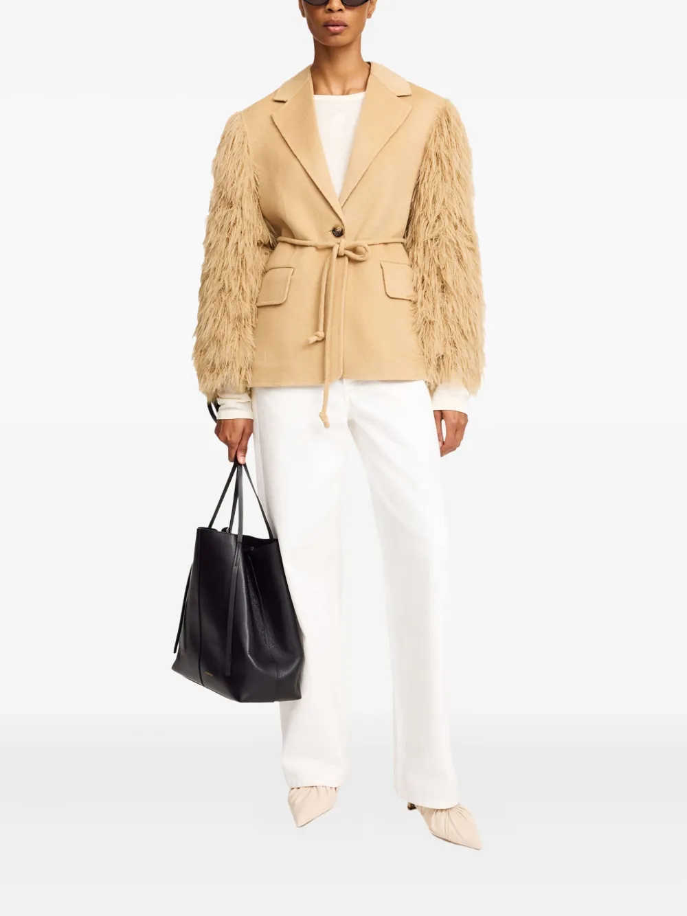Postoje komadi koje primijetimo odmah i oni koji nam se polako, ali sigurno, uvuku pod kožu. Ova jakna skandivaskog brenda By Malene Birger pripada drugoj skupini – onoj koja ne treba glasne boje ni agresivne krojeve da bi ostavila dojam. Dovoljni su savršeno pogođen kroj, profinjena paleta i jedan promišljen detalj koji mijenja sve. U ovom slučaju, to su raskošni rukavi od umjetnog krzna koji klasičnu vunenu jaknu pretvaraju u statement komad.