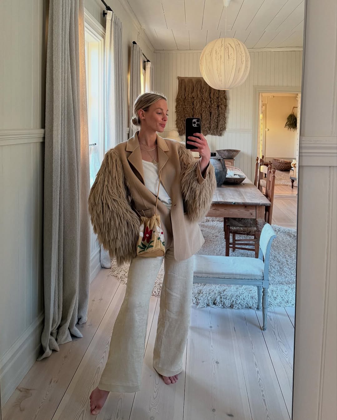 Ono što ovu jaknu čini posebno dobrom investicijom jest njezina svestranost. U kombinaciji s bijelim hlačama i jednostavnim topom izgleda iznimno čisto, moderno i luksuzno, dok će uz traperice, čizme i velika tote torba bez problema funkcionirati kao svakodnevni statement komad. To je ona jakna koja podiže i najjednostavniji outfit, bez osjećaja prenaglašenosti.