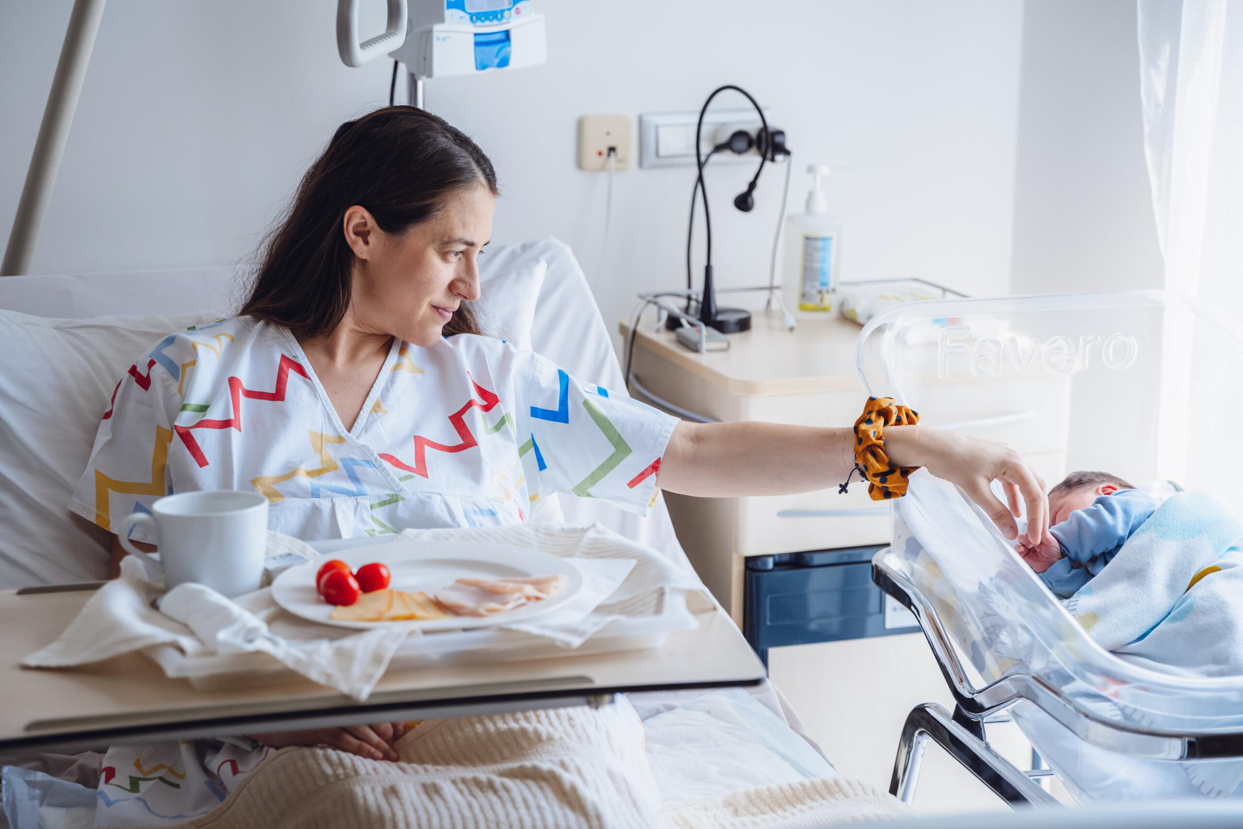 Nakon poroda, pacijentice odsjedaju u sobama u kojima je razina usluge gotovo kao hotelska, s pomno izabranim obrocima koji se pripremaju u vlastitoj profesionalno opremljenoj kuhinji od kvalitetnih namirnica biranog porijekla te su prilagođeni prehrambenim navikama mame.