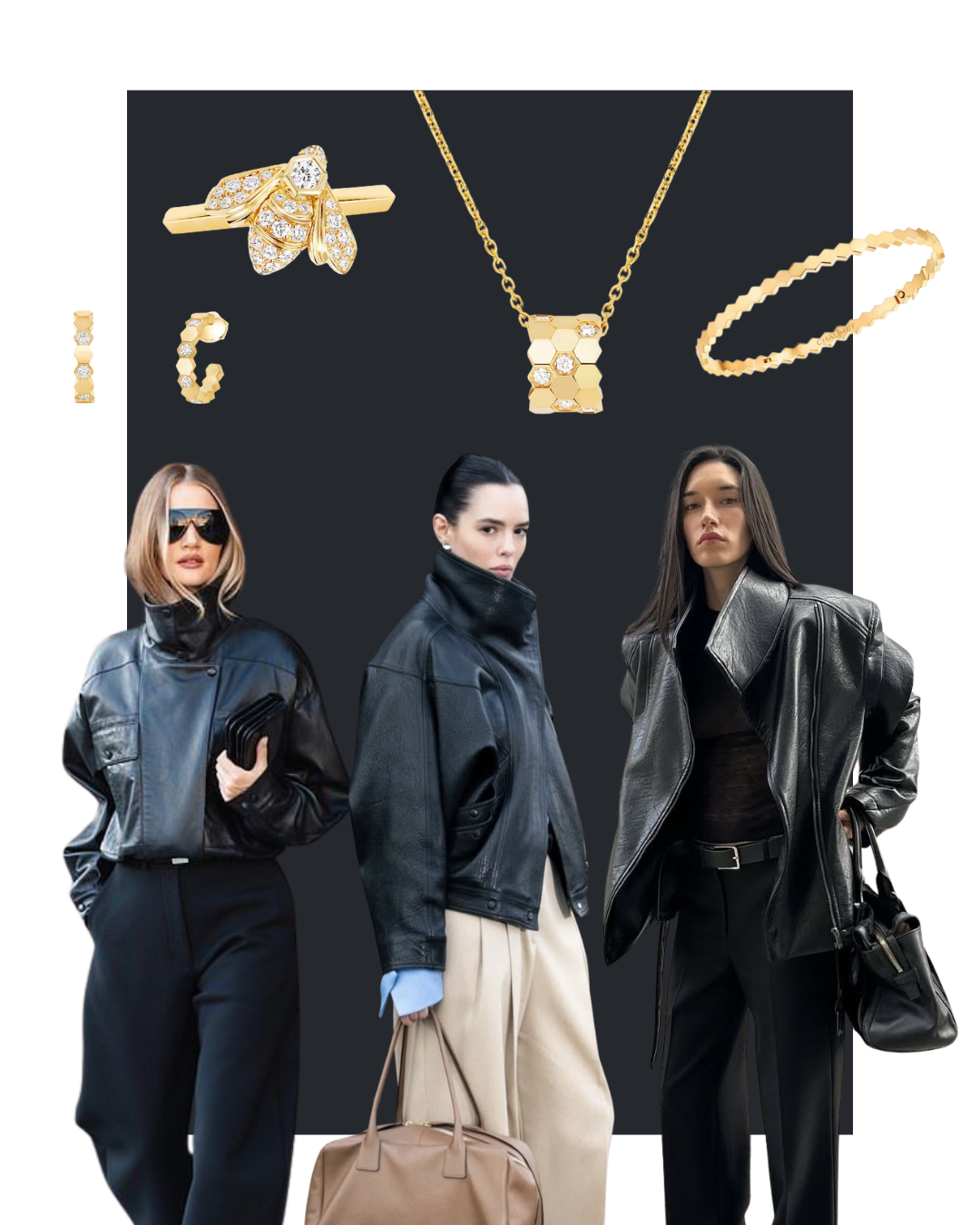 Kožnata jakna i žuto zlato – kontrast koji uvijek funkcionira