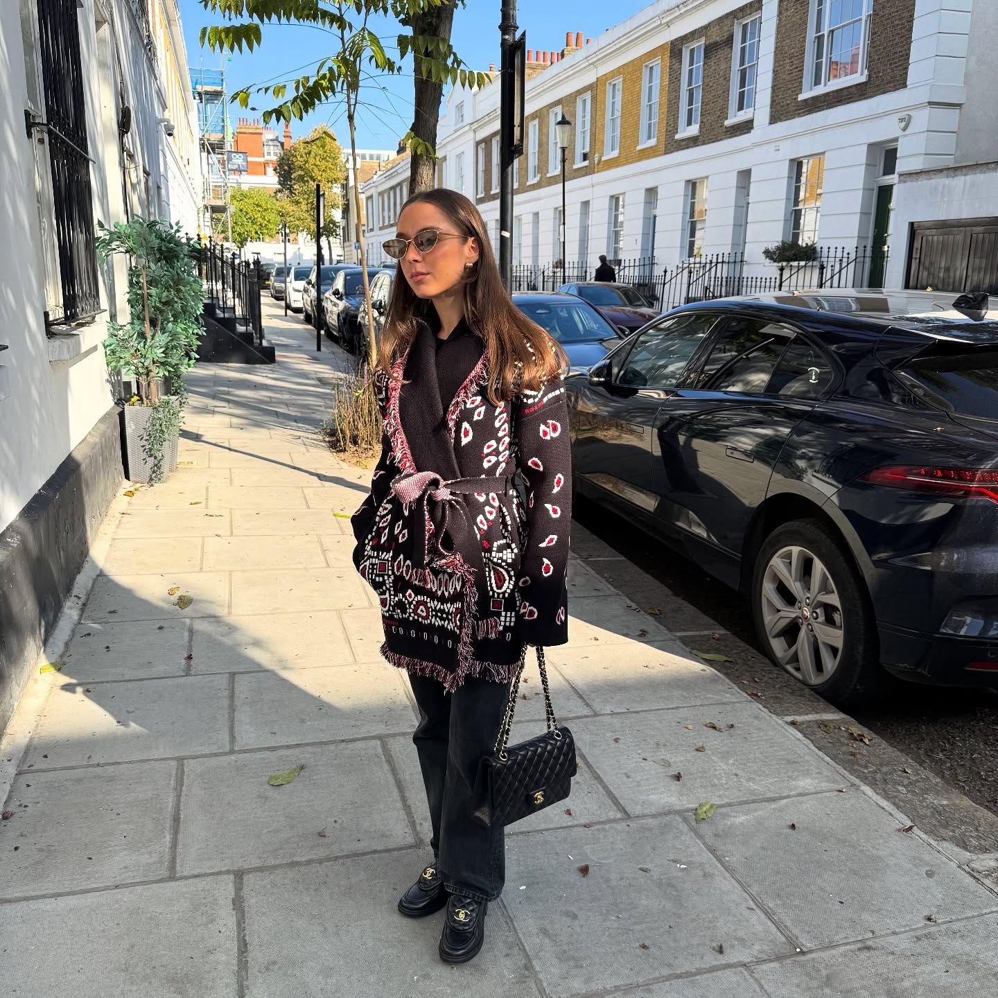 Na prvi pogled, ovaj kardigan nas podsjeća na popularan dizajnerski komad brenda Anui, no i kardigane brenda Ava Be o kojima smo pisali prošle sezone. U ovom slučaju, radi se o kardiganu britanskog brenda Noughts & Kisses koji u asortimanu ima najviše komada za party kombinacije, no nas se iz cijele kolekcije najviše dojmio duži crni kardigan u trenutačno jednom od najpopularnijih uzoraka, onog koji podsjeća na uzorak bandane. Kardigan je idealan za slojevito odijevanje i svakoj će odjevnoj kombinaciji unijeti razigranost.