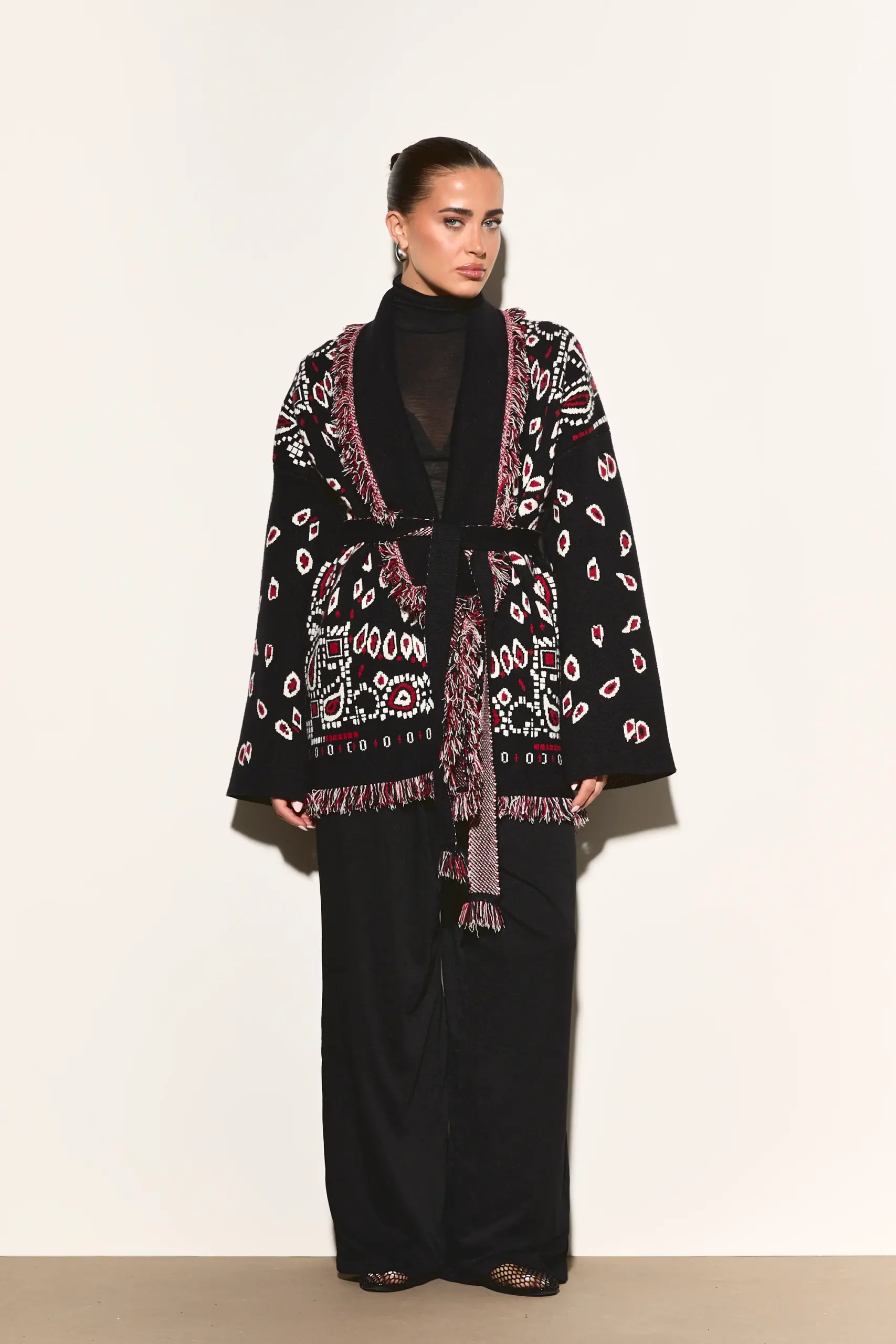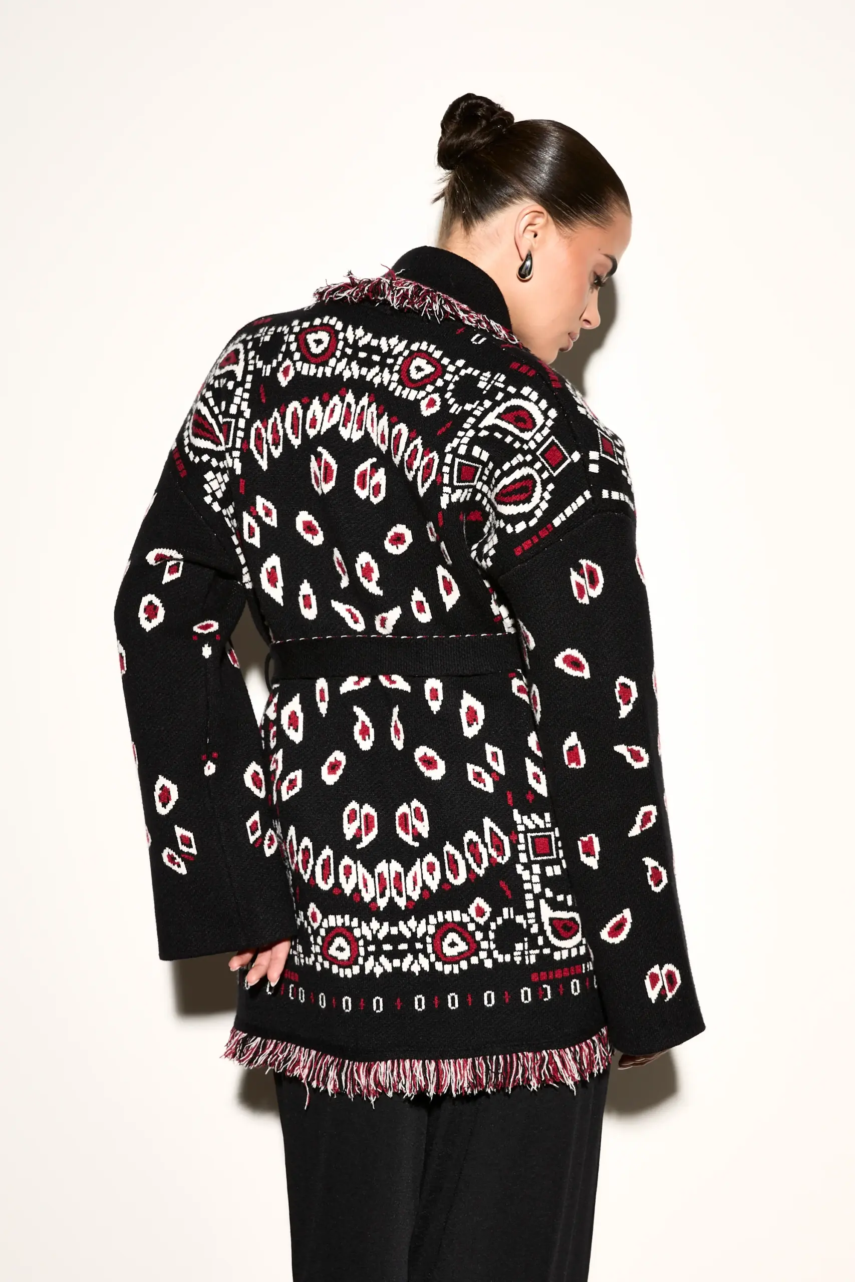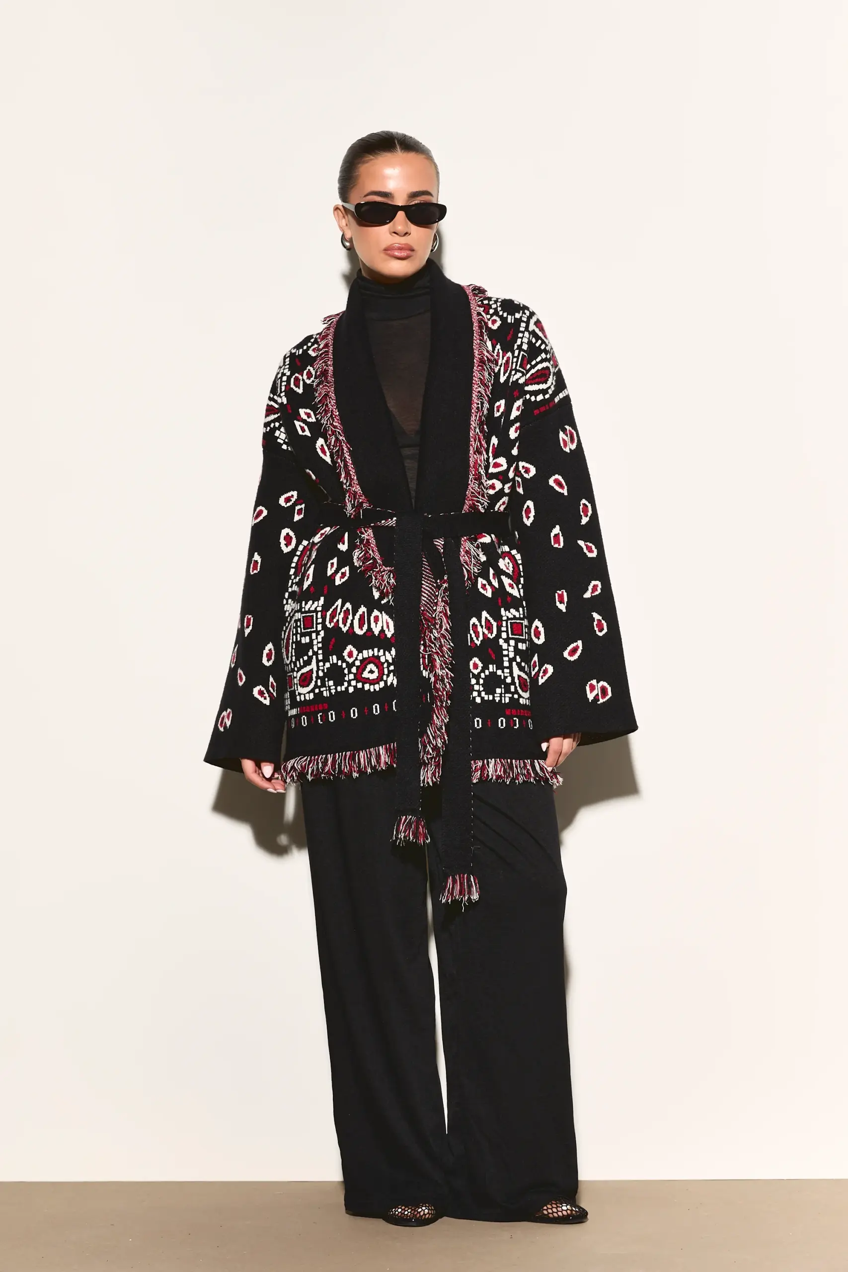 Na prvi pogled, ovaj kardigan nas podsjeća na popularan dizajnerski komad brenda Anui, no i kardigane brenda Ava Be o kojima smo pisali prošle sezone. U ovom slučaju, radi se o kardiganu britanskog brenda Noughts & Kisses koji u asortimanu ima najviše komada za party kombinacije, no nas se iz cijele kolekcije najviše dojmio duži crni kardigan u trenutačno jednom od najpopularnijih uzoraka, onog koji podsjeća na uzorak bandane. Kardigan je idealan za slojevito odijevanje i svakoj će odjevnoj kombinaciji unijeti razigranost.
