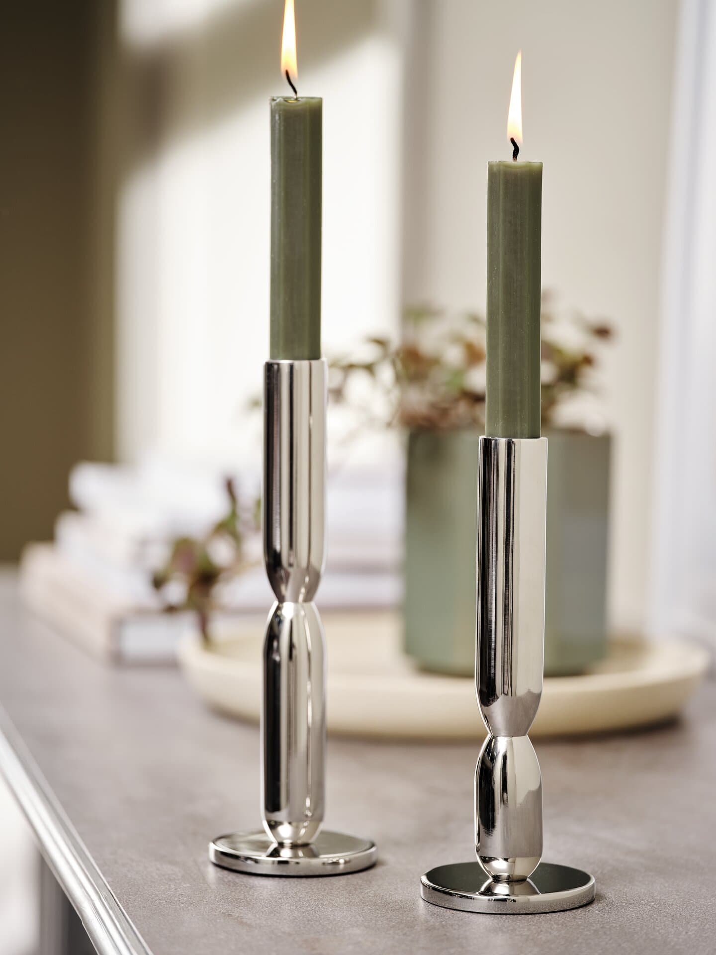 Boje inspirirane prirodom, poput zelenih i tamno ljubičastih tonova, kombiniraju se s metalnim i sjajnim elementima koji prostoru daju suvremeni, urbani karakter. To se posebno ističe kroz detalje poput metalnih svijećnjakatabure te manjih komada namještaja s reflektirajućim površinama.