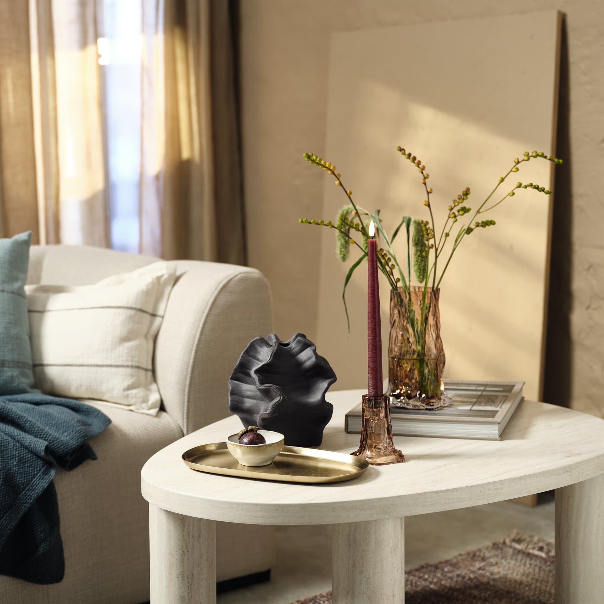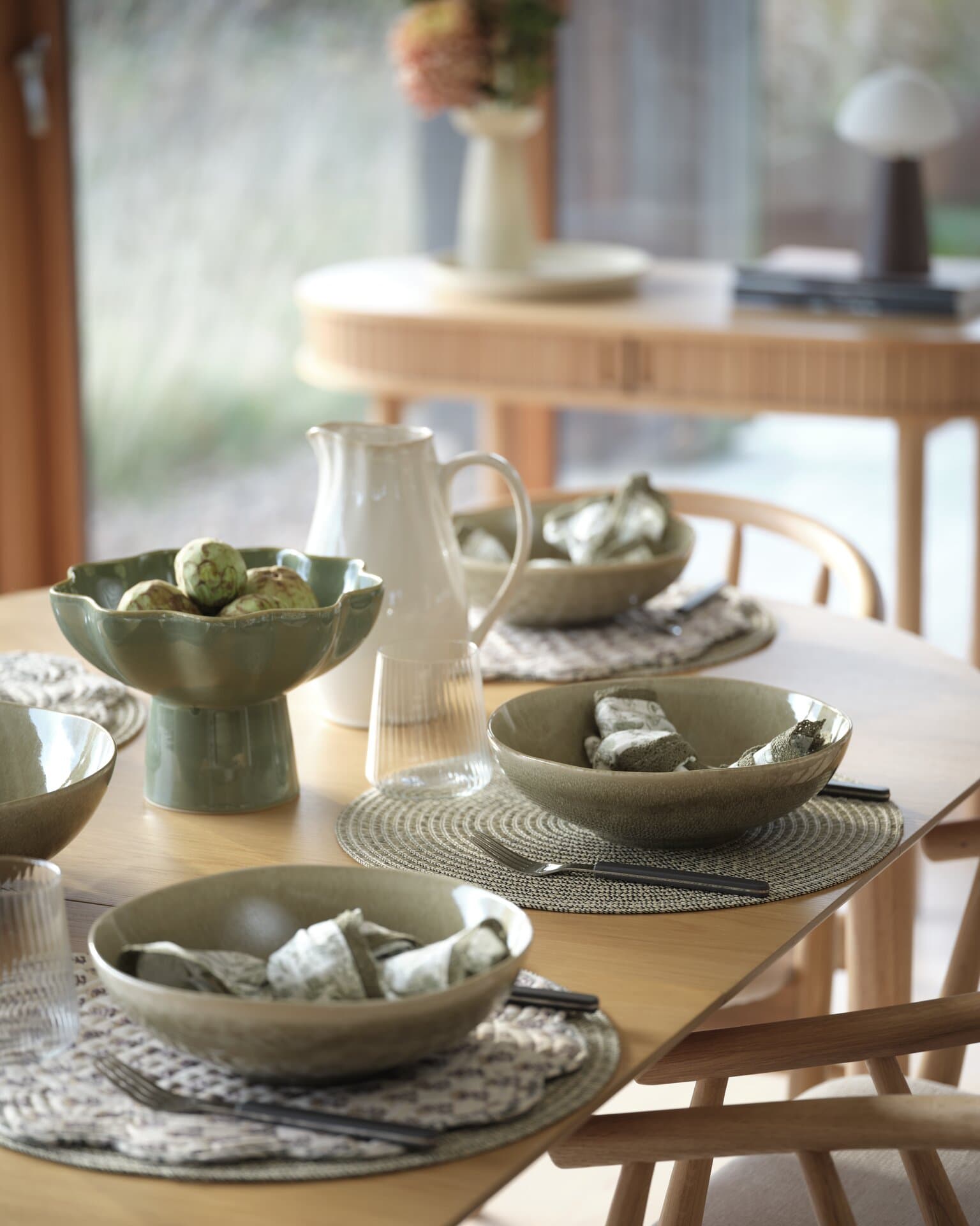 Inspiracija dolazi iz prirodnih elemenata – zemlje, mora i neba – što se reflektira kroz taktilne površine i dizajn koji potiče osjećaj povezanosti s okruženjem. To se vidi u detaljima poput vaza nepravilnih oblika, zdjela i salveta, koji prostoru dodaju toplinu bez vizualne težine.