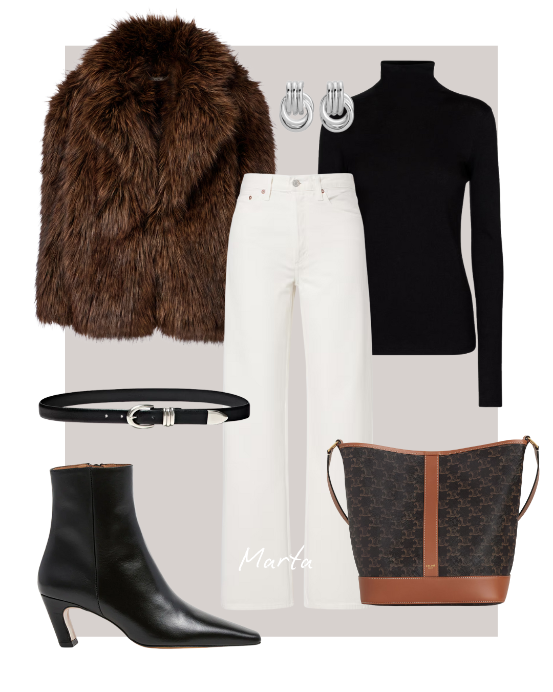 Social media managerica držala se klasike. Crna dolčevita Vince u kombinaciji sa bijelim trapericama Agolde, koje krase visoki struk i široke nogavice, te kožnatih gležnjači Flattered kreirala je chic retro outfit. Uz jednostavnu kombinaciju, iskombinirala bi  statement bundu s potpisom Magde Butrym, upečatljive naušnice Heaven Mayhem i uski kožnati remen Massimo Dutti sa srebrnim detaljima. Za dašak pariškog stila, tu je i bucket torbica luksuzne kuće Celine.