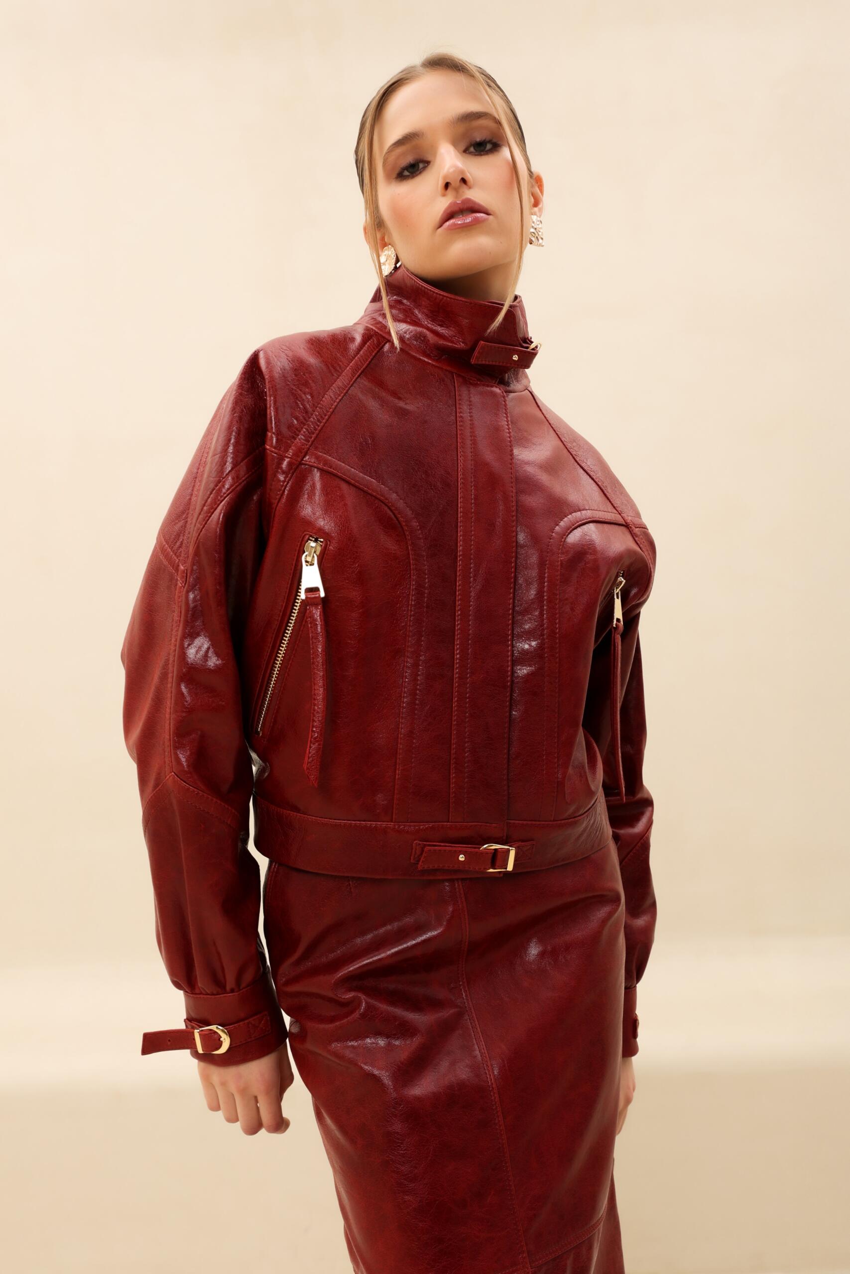@matejasucevic nosi crvenu kožnatu jaknu Mona