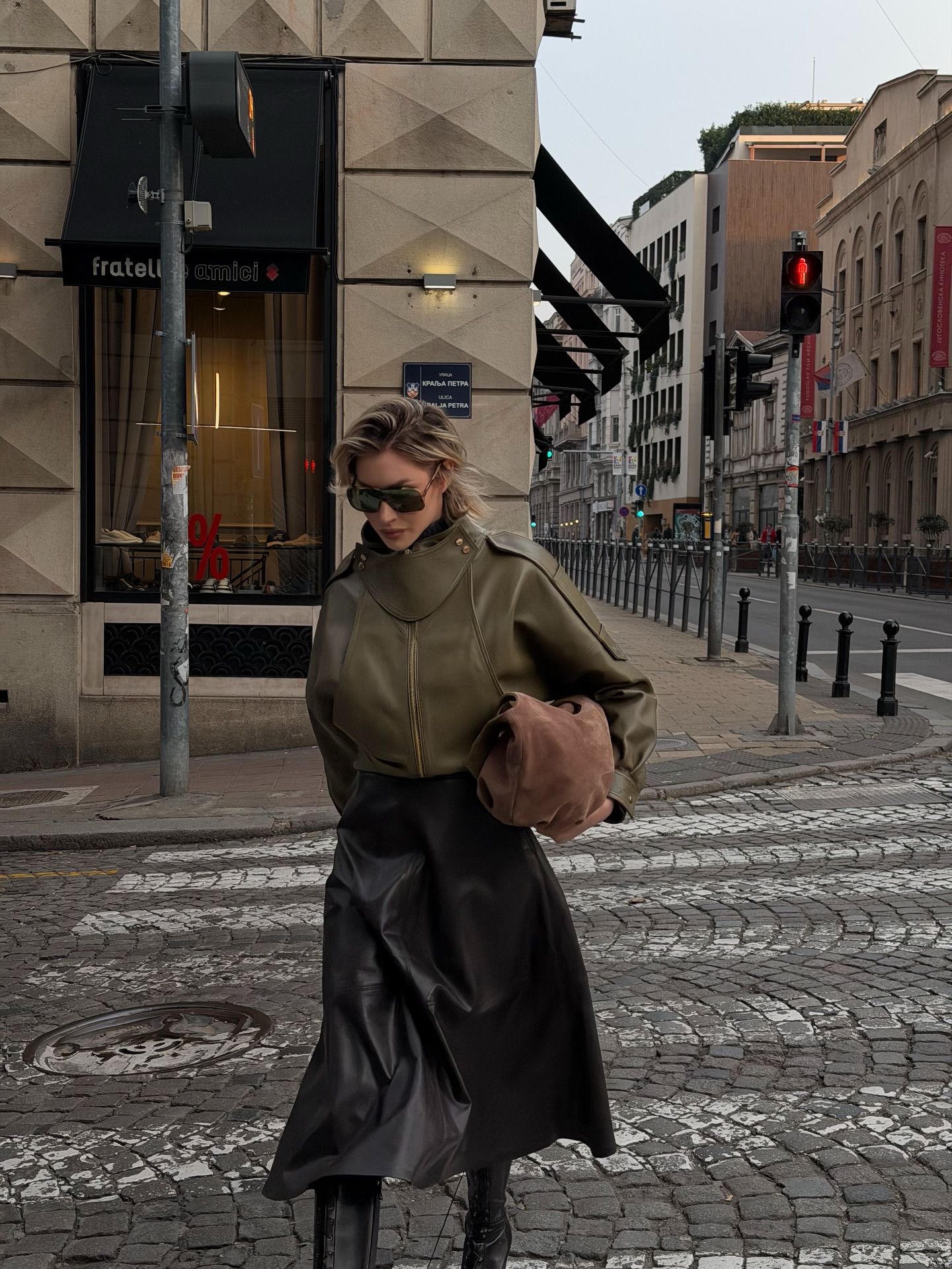 Iako ne možete pogriješiti niti s jaknom niti kožnatom torbicom u crnoj ili boji konjaka – jer pristaju na sve kombinacije – ovog proljeća fokus je na bojama, a to potvrđuju i broje influencerice poput Mateje Sučević, Ane Bacigner i Anastasije Grujić. Već smo pisali o tome da će crvena boja biti hit sezone, a za njom ne zaostaju niti maslinastozelene te sve nijanse ružičaste boje. Komade od kože u tim bojama definitivno ćete ove sezone viđati posvuda, od feeda na društvenim mrežama pa sve do ulica metropola.