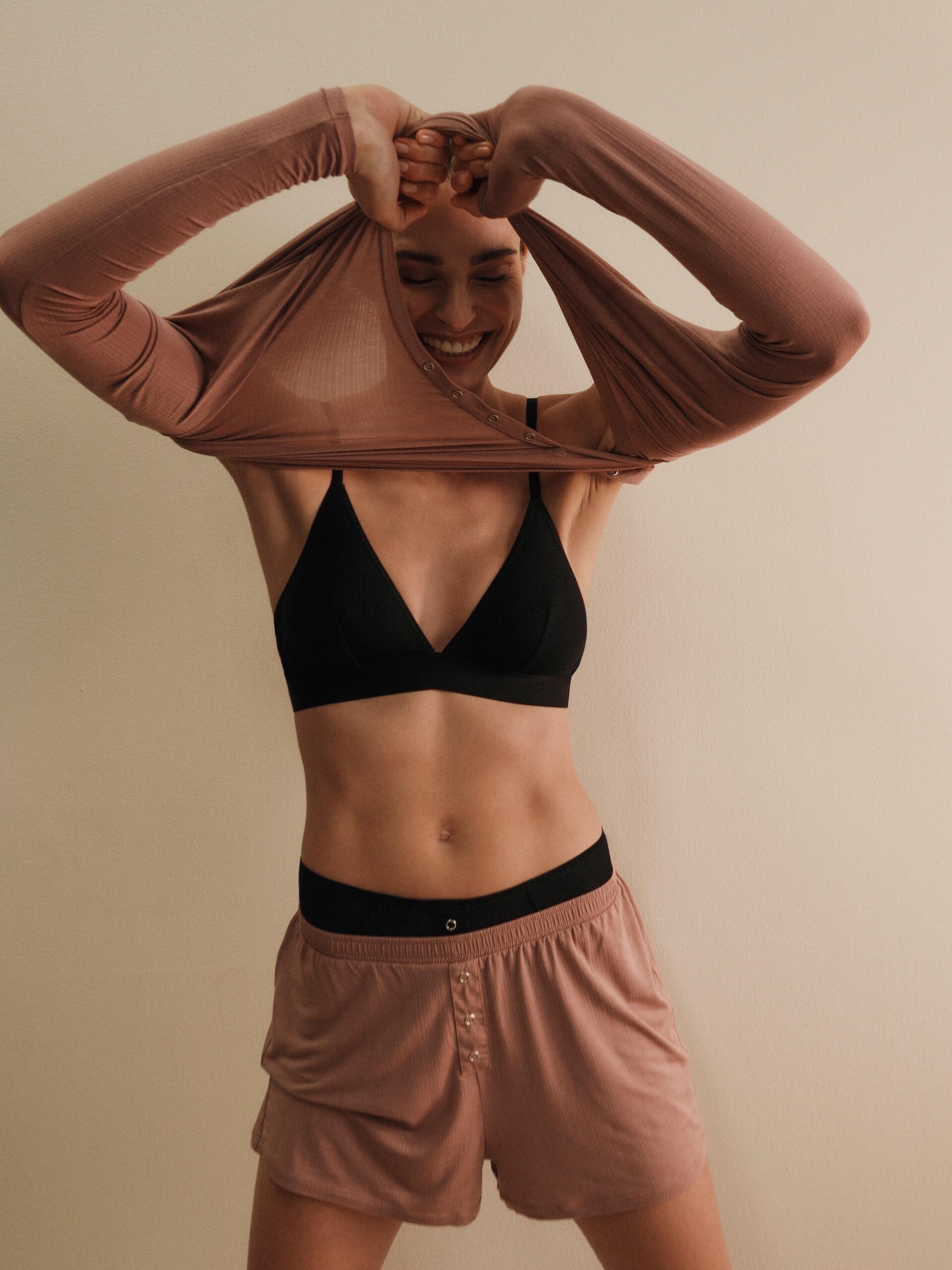 Kombinacija donjeg rublja, majici i donjih dijelova idealna je za cijeli dan – dok nosite ove komade osjećat ćete se ugodno, a izgledati elegantno i profinjeno. Svi modeli dostupni su u klasičnoj crnoj boji i u nježnoj nijansi ružičaste koja će svima odlično pristajati.