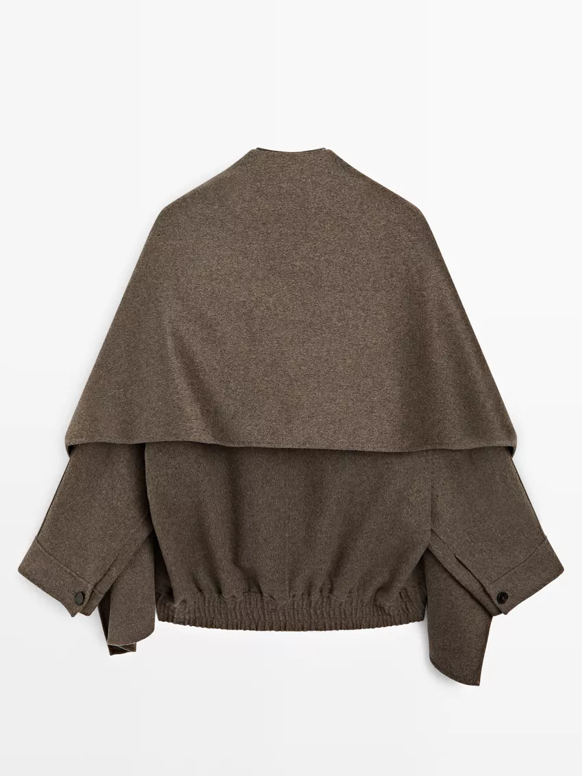 Posebno upečatljiv, a i praktičan detalj je detalj šala koji se može odvojiti. To znači da u trenucima jačeg vjetra ili hladnoće možete dodatno zaštititi vrat, a u toplijim danima ukloniti šal i nositi jaknu kao klasičnu bomber jaknu. Jednostavnost i nenametljivost dizajna omogućavaju da jakna funkcionira u brojnim kombinacijama: od casual outfita s trapericama i čizmama do elegantnijih varijanti sa suknjom i gležnjačama.