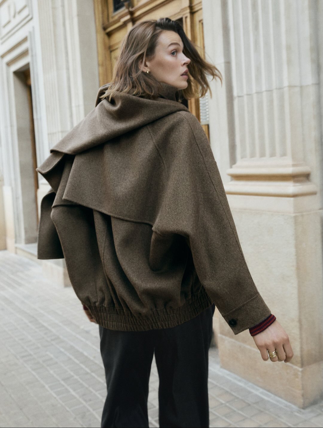 Siva boja ovog modela dodatno doprinosi univerzalnosti – neutralna, sofisticirana, lako kompatibilna s različitim bojama i teksturama. Zahvaljujući opuštenoj silueti i kvalitetnoj tkanini, jakna nosi dozu luksuza koju očekujemo od brendova kao što je Massimo Dutti, a opet ostaje nosiva i svakodnevna — idealna za kavu, šetnju gradom pa čak i za neku večernju varijantu.