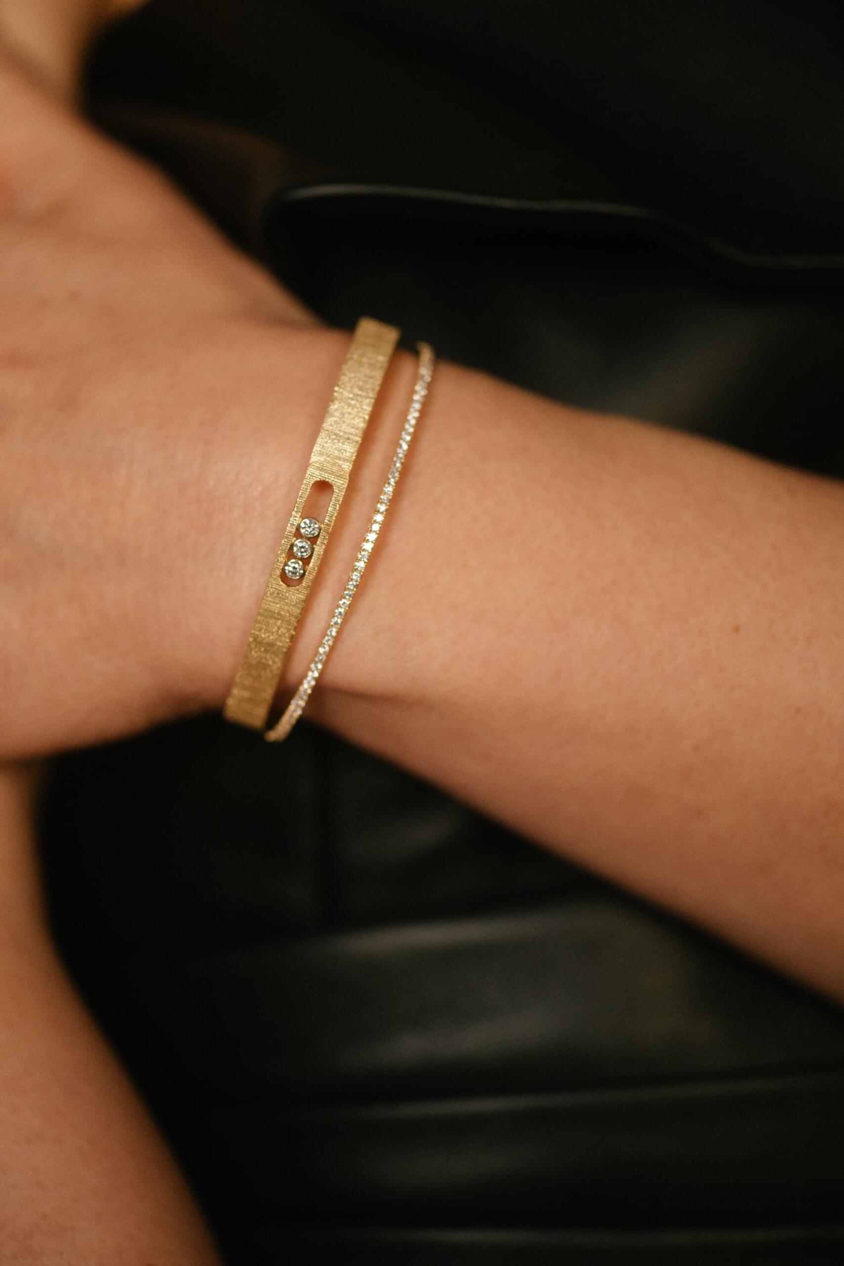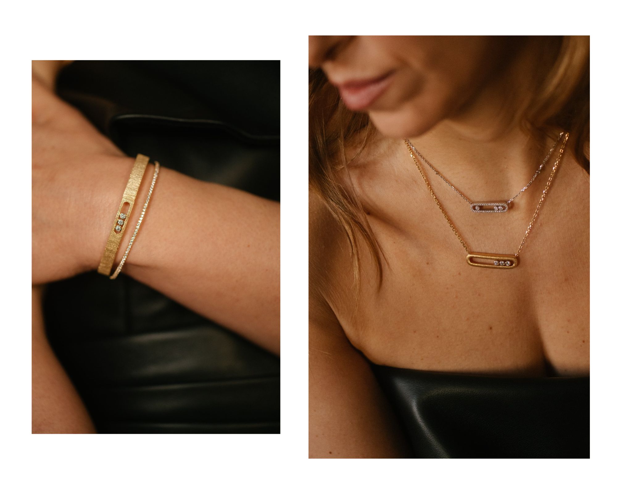 Lijevo: Narukvice Messika Move Ciselé, Ref. 14481-YG i Skinny, Ref. 06097-YG Desno: Ogrlica Messika Move Classique Ciselé, Ref.14667-YG i Baby Move Pavé, Ref. 04322-WG