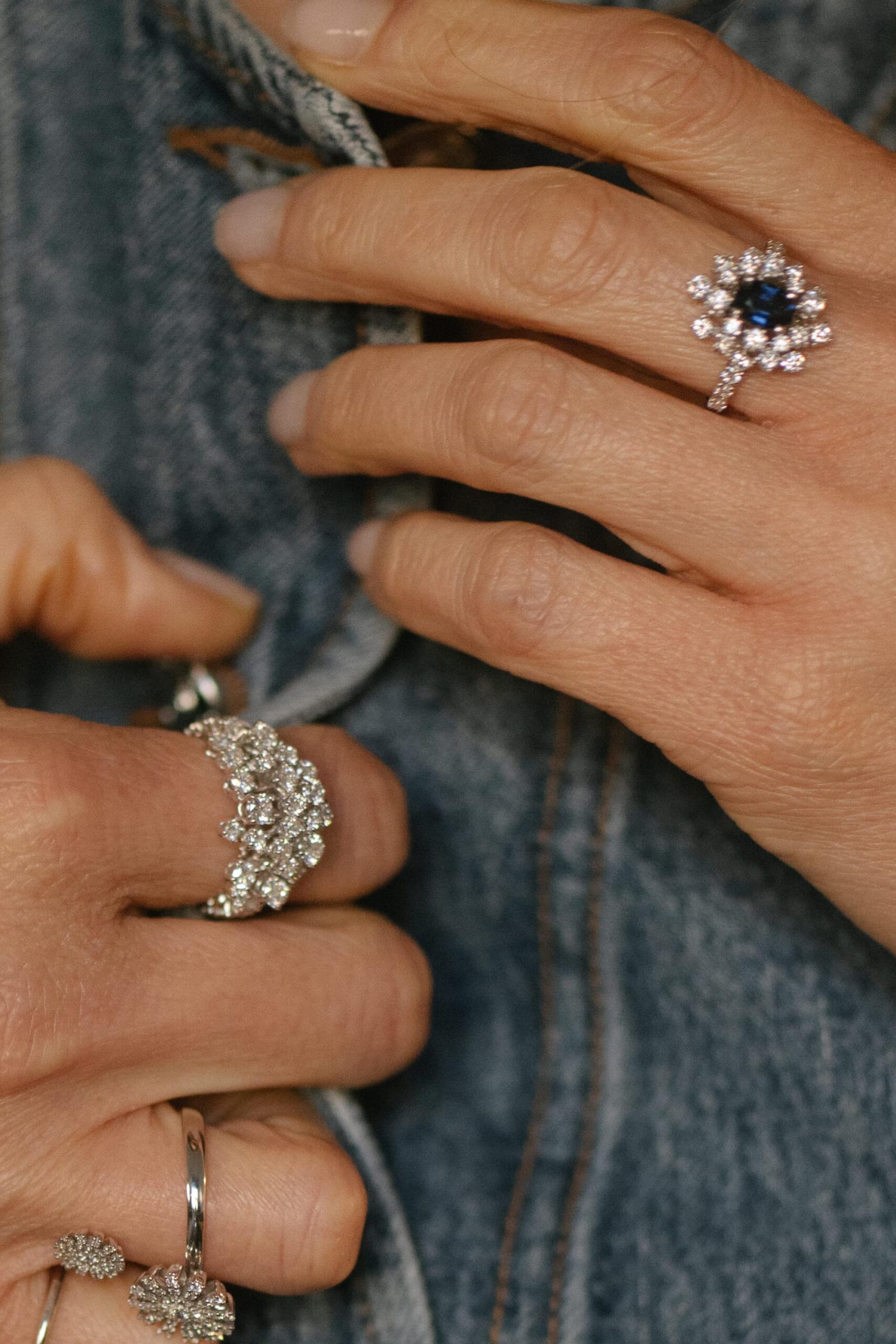 Dijamantni prsten Damiani Mimosa, Ref.20110125-WG i dijamantni prsten sa safirom Damiani Mimosa, Ref. 81092404-WG