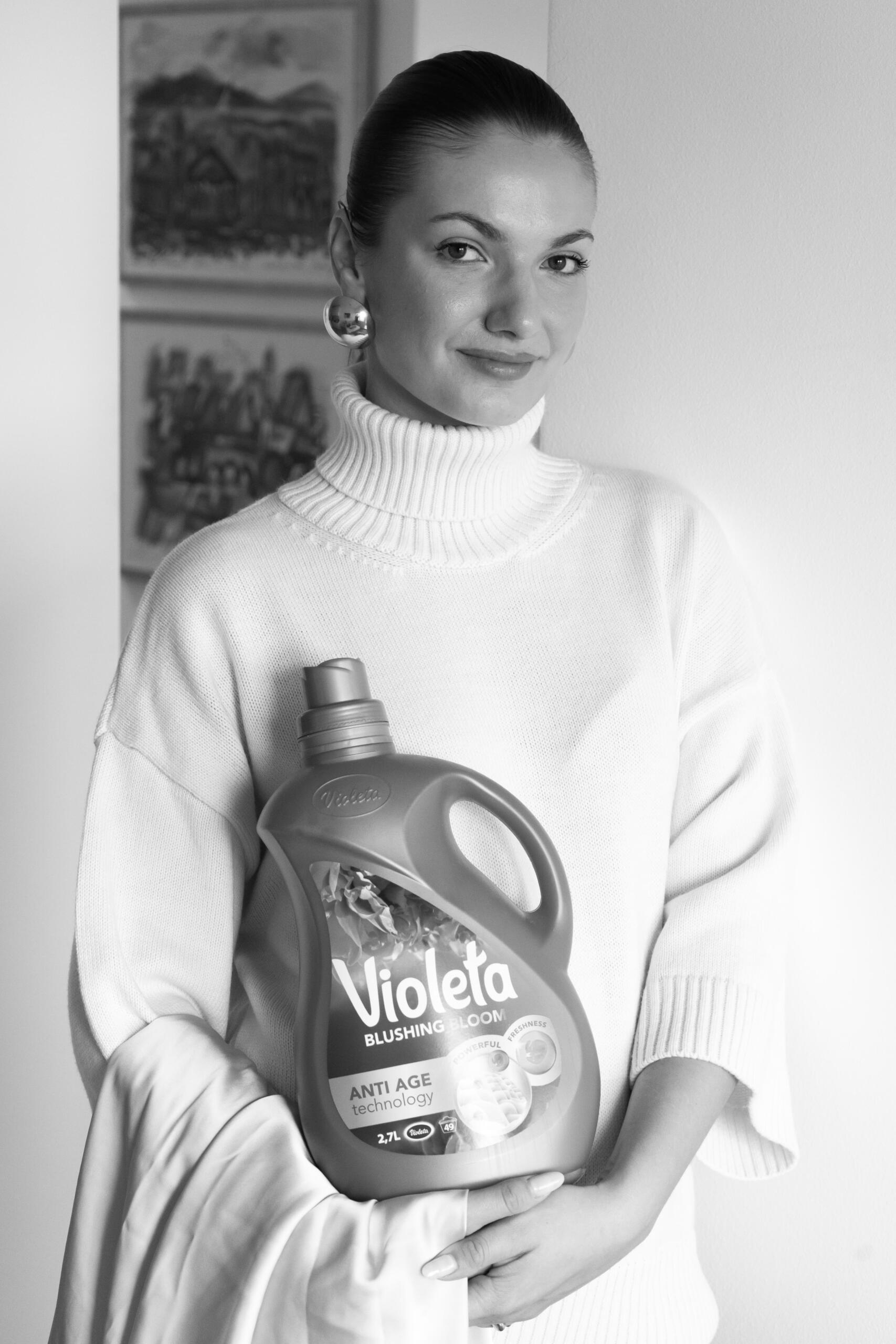 MČ: Jako pazim na pravilno održavanje. Perem po materijalima, ne perem previše rublja odjednom i biram nježnije programe. Primijetila sam koliko razliku čini pravi deterdžent za određenu vrstu rublja. Za tamnije komade koristim Violeta Intense Black jer čuva intenzitet crne boje, a za obojene koristim Violeta Intense Color deterdžent kojim se zadržava intenzitet boja svakodnevne odjeće, a za osjetljivo rublje poput vune i svile Violeta Blushing Bloom. Anti-age formulacije sadrže sastojke koji prodiru duboko u tkaninu, pružajući im podršku i oblikujući njihovu strukturu, a to mi je baš pomoglo da mi komadi ostanu mekani i kao novi.