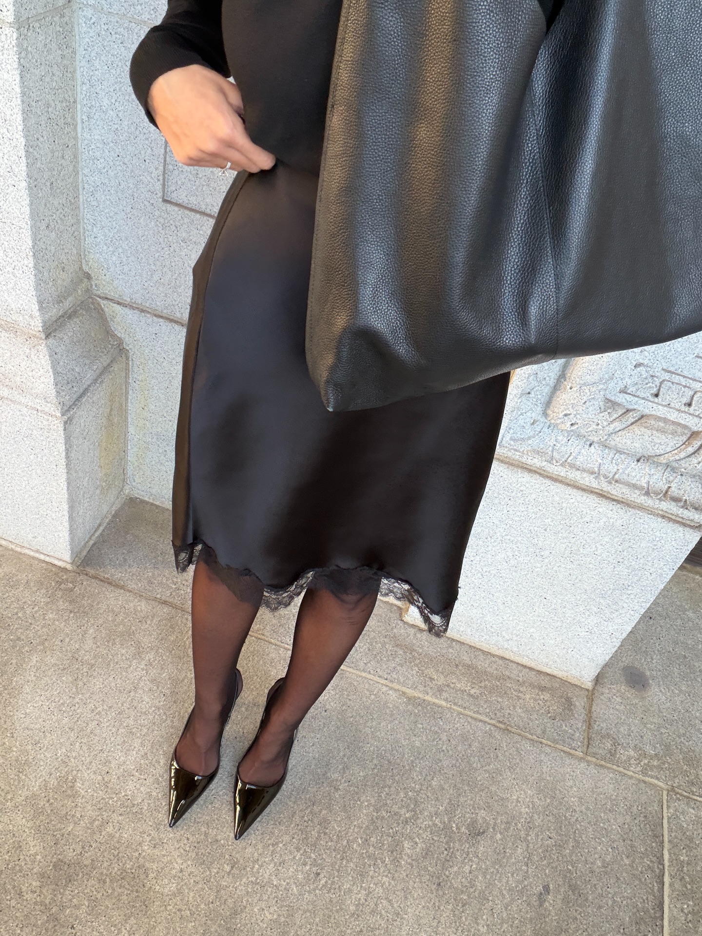 Slip suknje neizostavan su komad svake sezone, a tijekom blagdana su savršen ulov jer se mogu nositi na pregršt načina. Čipka je ove godine postala pravi modni hit, a mi smo pronašli idealnu midi suknju izrađenu od kombinacije satena i čipke u kolekciji španjolskog high street brenda Mango.