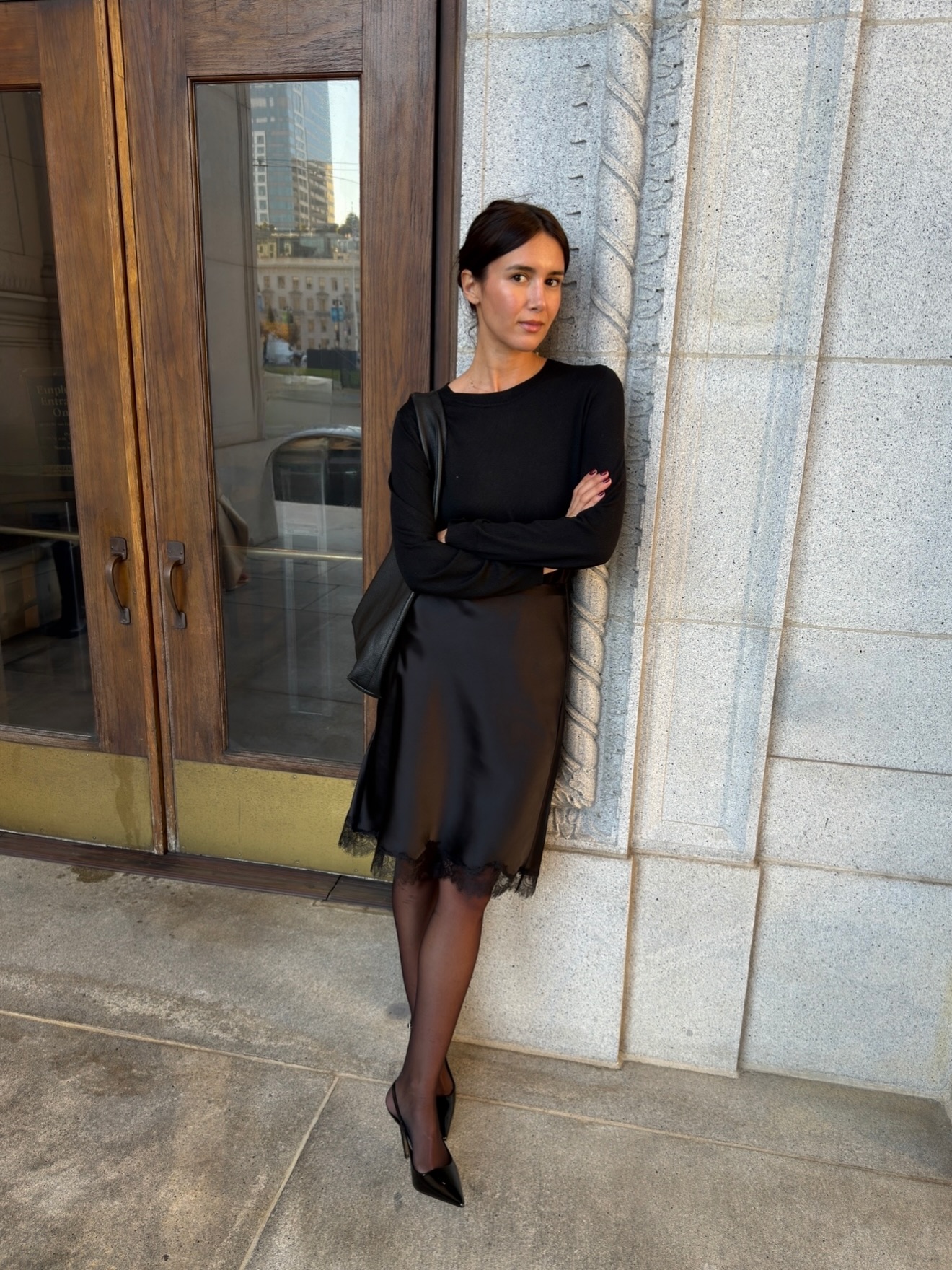 A da je riječ o must have za ormar dokazala je Lison Sebellin koja je ovu suknju iskombinirala s crnom majicom, najlonkama i crnim lakiranim salonkama. Ovaj outfit jednostavno je rekreirati, a ostavlja dojam elegancije. Mi bismo ovu suknju nosili i na džemper u sivoj nijansi i čizmama s potpeticom o kojima smo pisali nedavno. Ovaj komad idealan je za subotnje druženje s prijateljicama, ali i kao last minute komad ako ne znate što nositi za vrijeme blagdana.