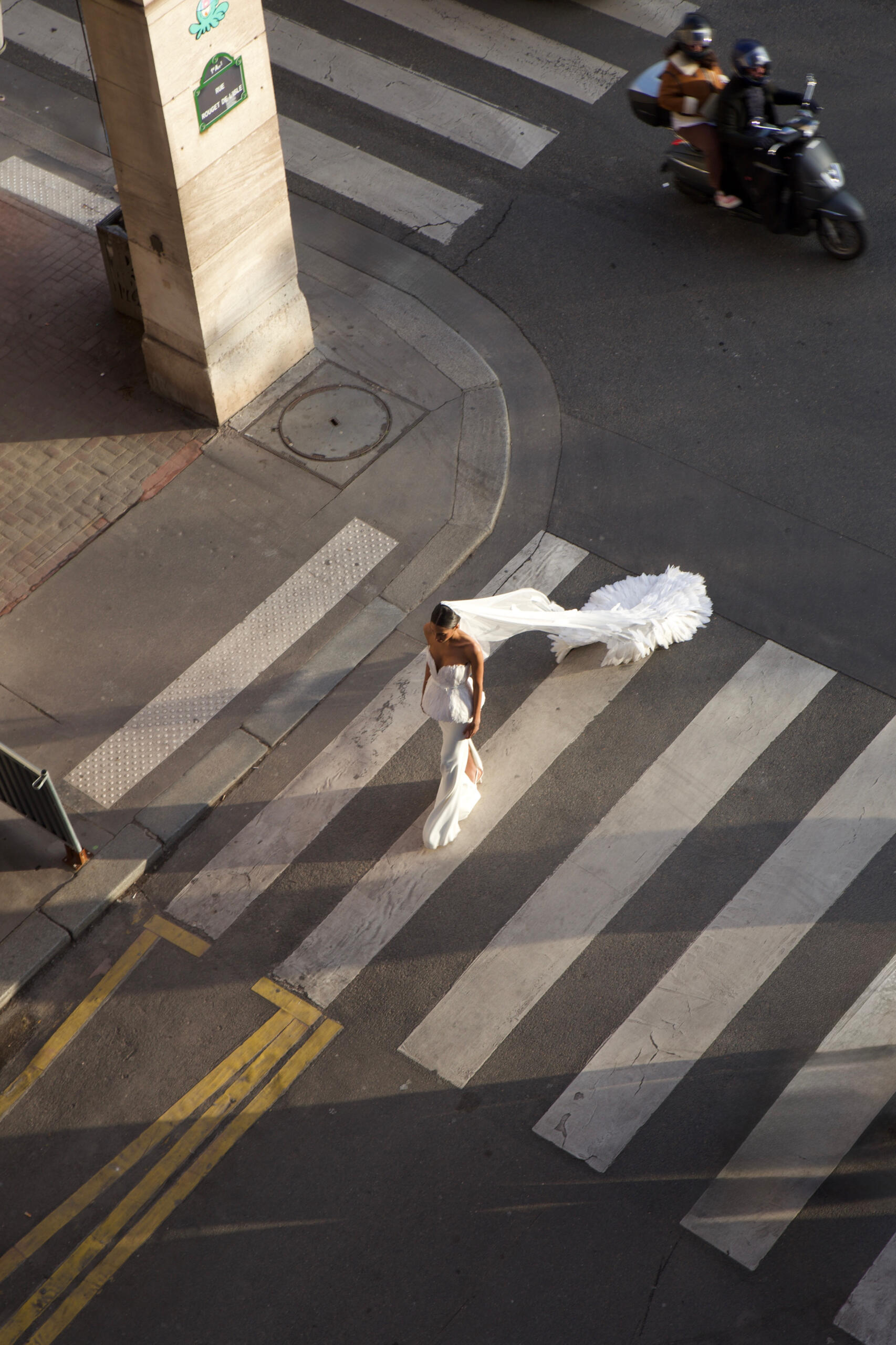 Svaka haljina nosi prepoznatljiv Momosa potpis – romantične siluete, luksuzne tkanine i pažnju prema detaljima – ali u ovom okruženju, mlada je slobodna, hodajući gradom ona osvjetljava ulice Pariza. Fotografije otkrivaju kako tradicija susreće urbani šarm: svakim korakom mlada postaje simbol ljubavi u pokretu.