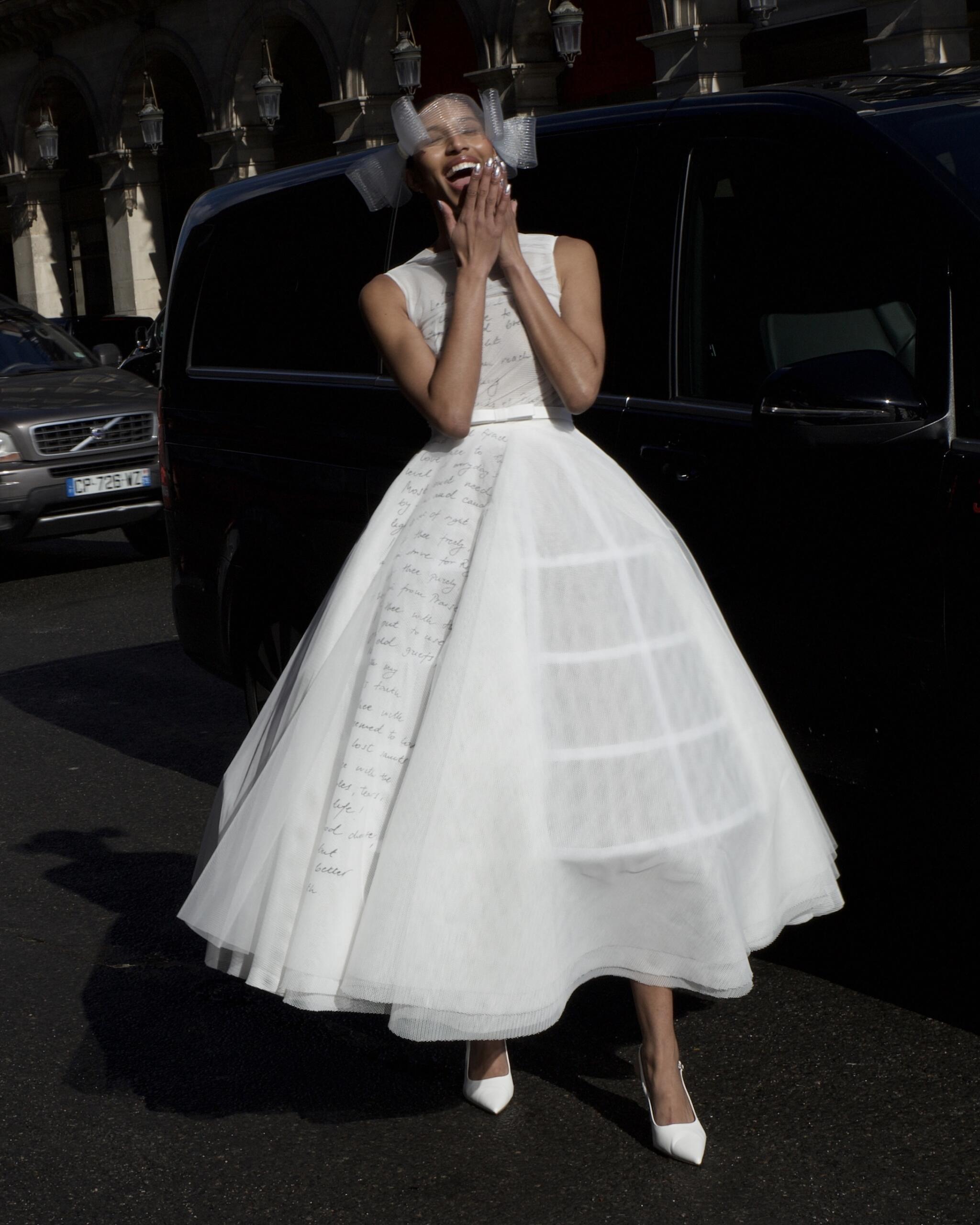 Oduševljeni smo svim komadima iz ove bridal kolekcije, a ima nekoliko komada koji su nam posebno zapeli za oko. Posebno se istaknula mini haljina s 3D motivom cvijeta koji zauzima cijelu površinu prednjeg dijela haljine, a zaljubili smo se u bridal kombinezon koji ima spuštena ramena te hlače širokog kroja s natpisom iz pjesme.
