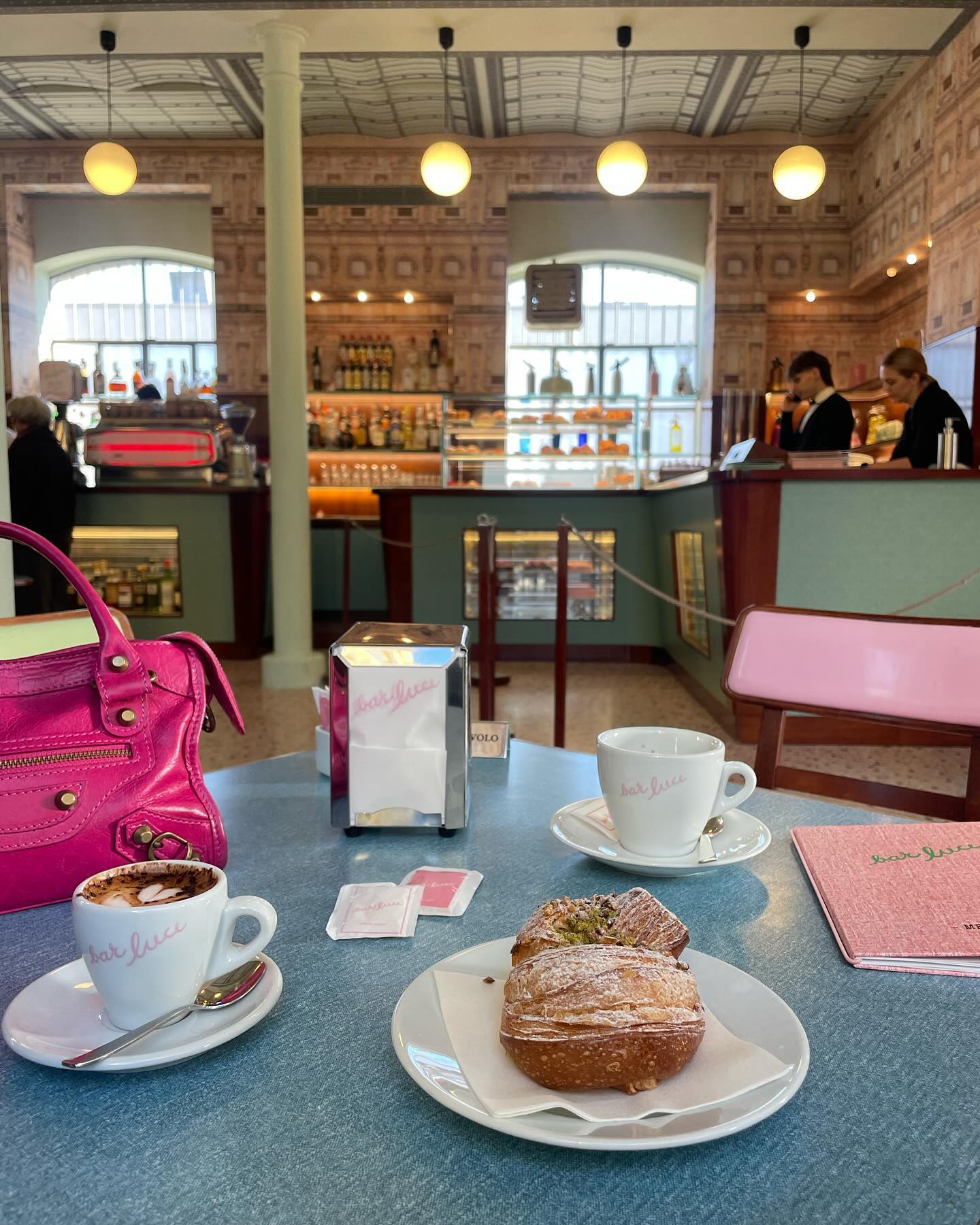 Potpuno drugačiji, ali jednako poseban doživljaj nudi Bar Luce, smješten u sklopu Fondazione Prada, malo izvan središta grada. Retro estetika, pastelne boje i filmski ugođaj čine ga jednim od najfotogeničnijih kafića u gradu. Idealno mjesto za kavu s dozom kulture – i inspiracije.