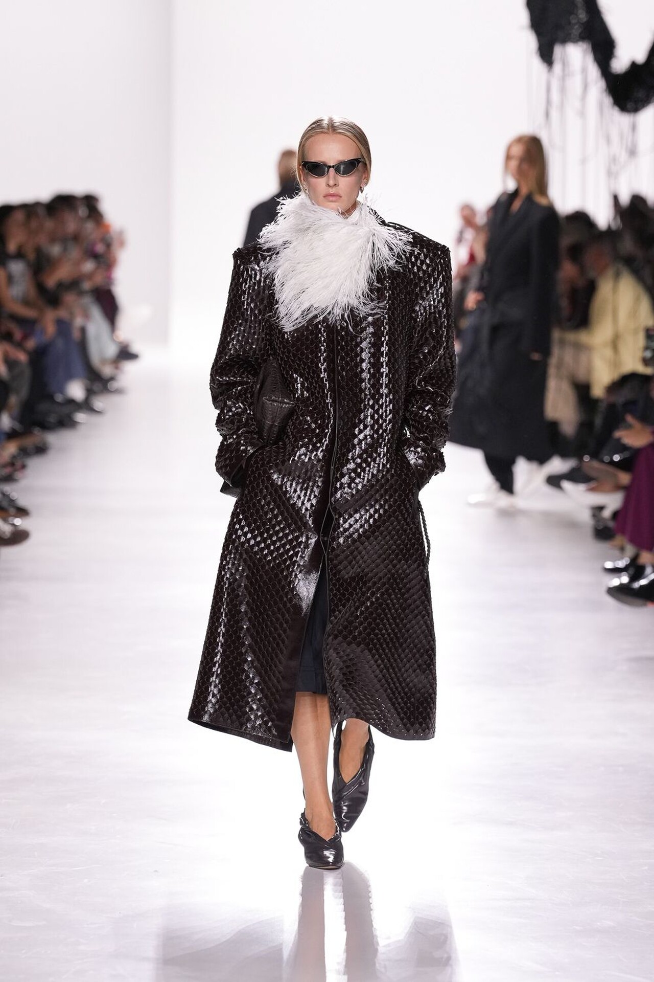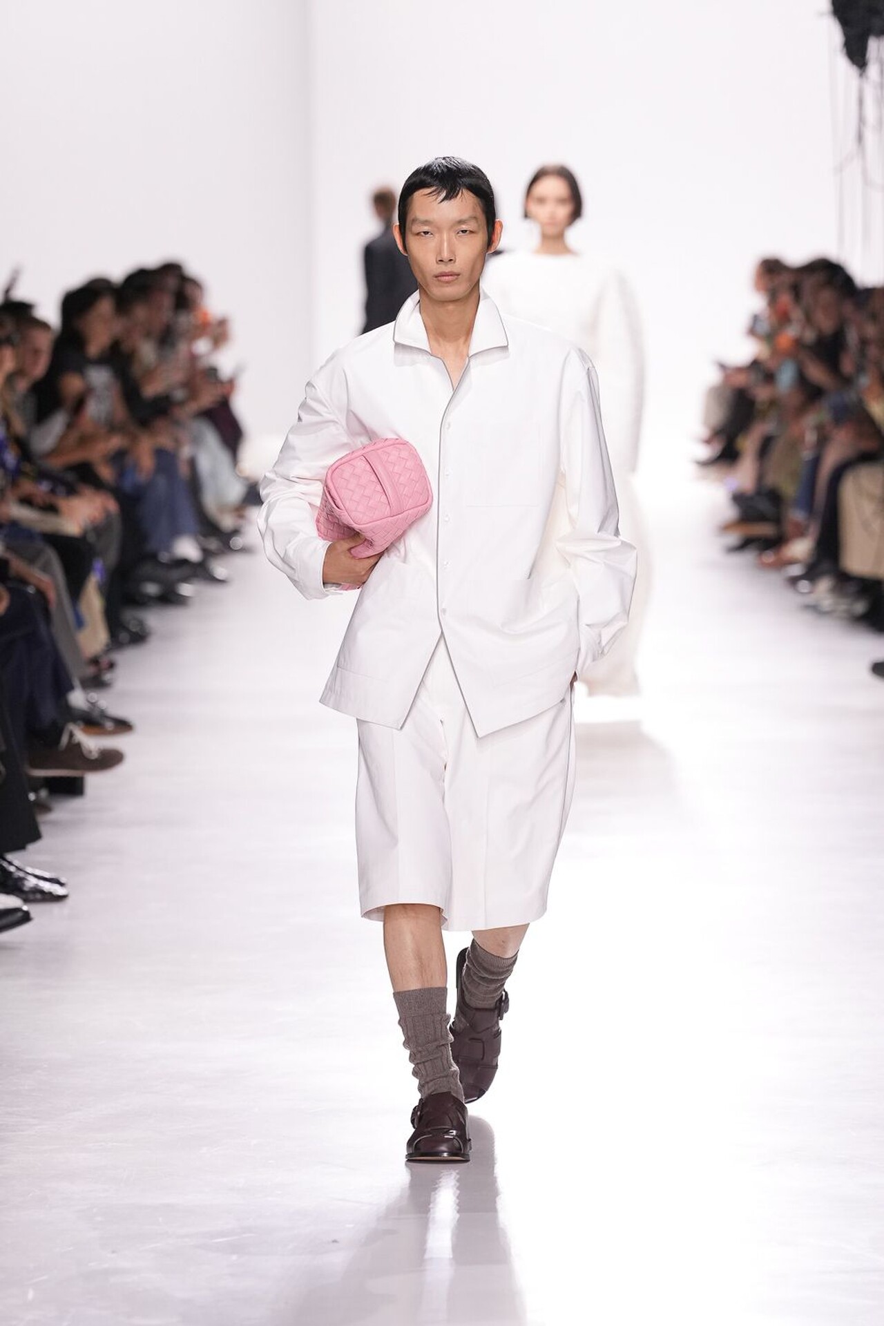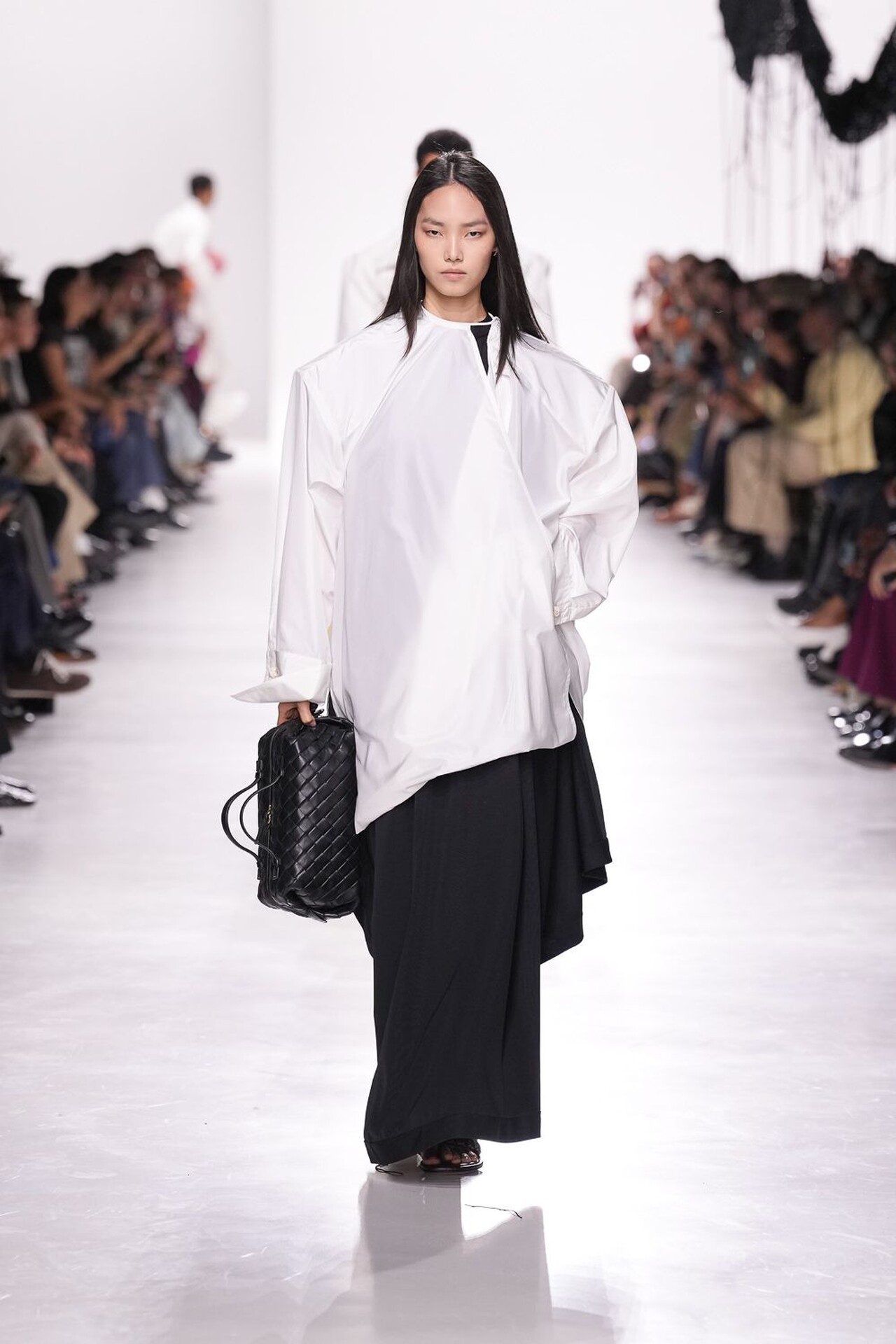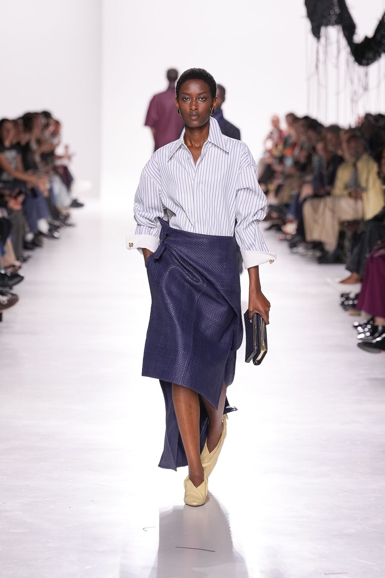 Revija se tako snažno oslanjala na odanost brenda prema zanatskog izradi, ali Trotter je pritom unijela i svježinu u prepoznatljivu estetiku kuće. Naslanjala se naravno na intrecciato tehniku izrade koja je vidljiva na gotovom svakom odjevnom komadu, pa tako i dodatku. Pletenu kožu gledali smo na kaputima, hlačama, maramama i naravno – torbama – koje su u njezinoj viziji nešto slobodnije strukture.