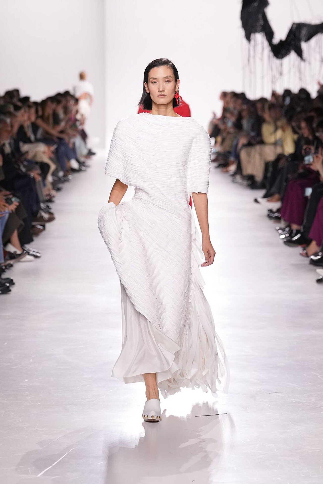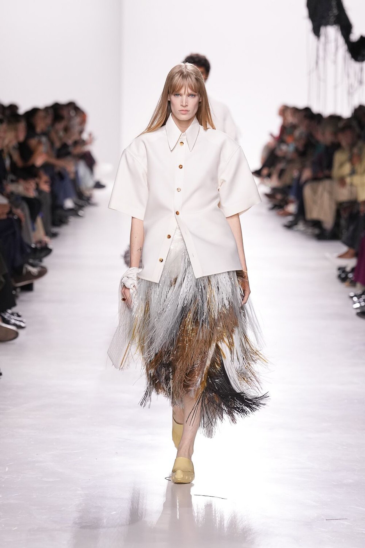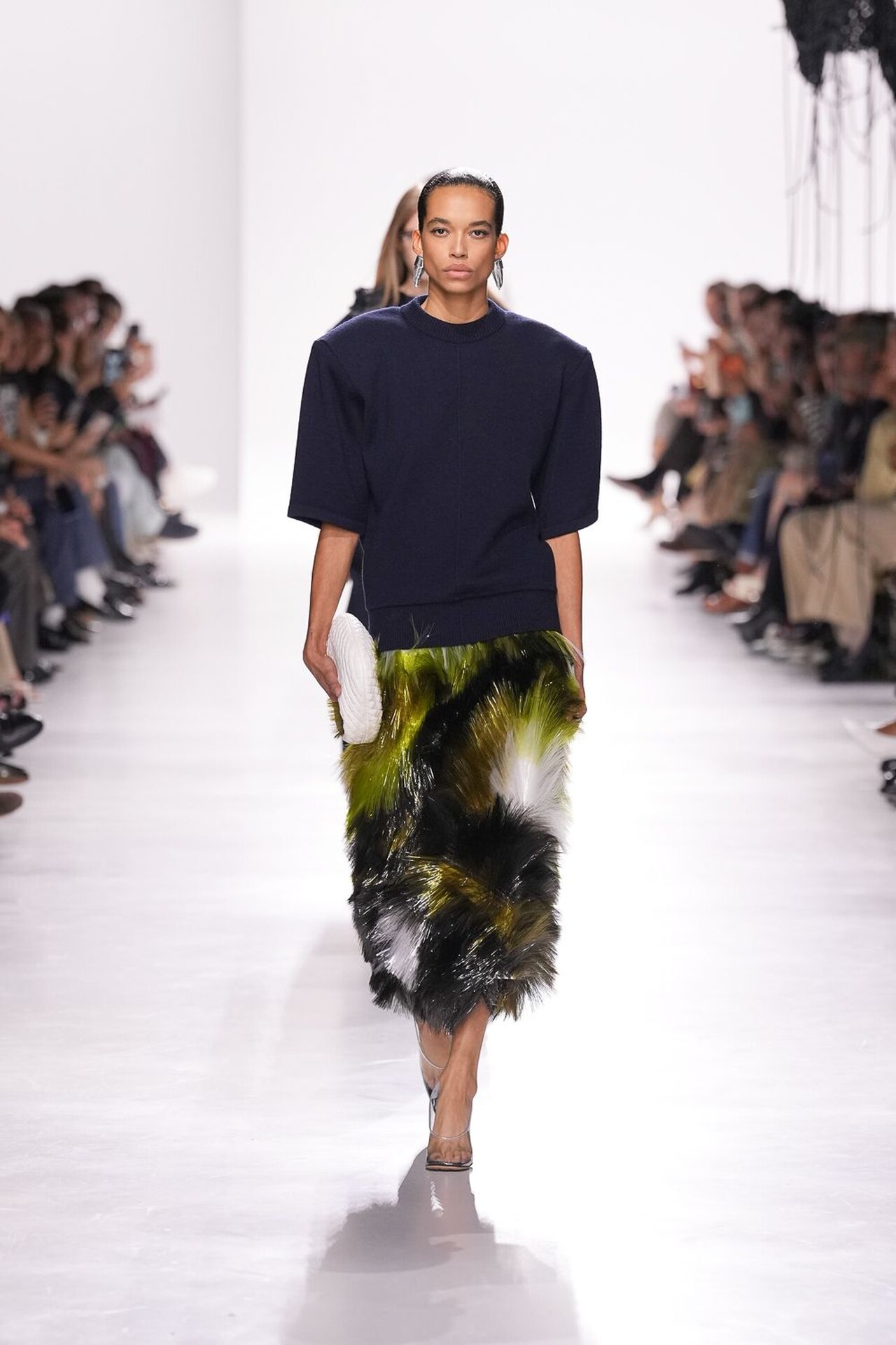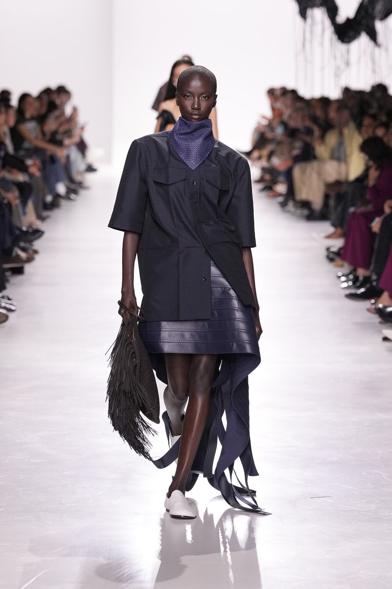Kolekcija je definirana kretnjom, pogotovo u zaigranoj kombinaciji haljina i suknji. Suknja sastavljena od kožnatih traka stvarala je ritam pri svakom koraku, dok su haljine s mikro-naborima i resicama produživale liniju tijela. Najsitaknutiji komad kolekcije je definitivno pletivo izrađeno od recikliranih staklenih vlakana, u živahnim nijansama narančaste, crvene i srebrnoplave. Ti su komadi dokazali da esperimentiranje s materijalima može izazvati iznenađujuću eleganciju.