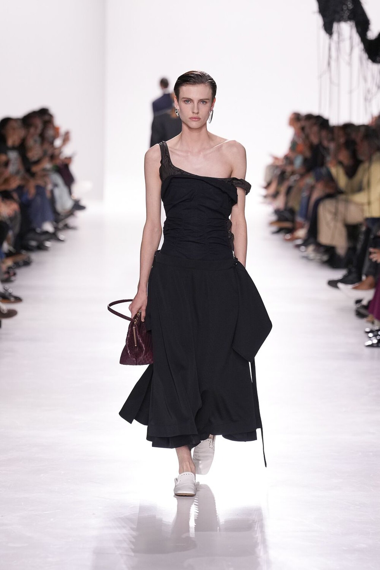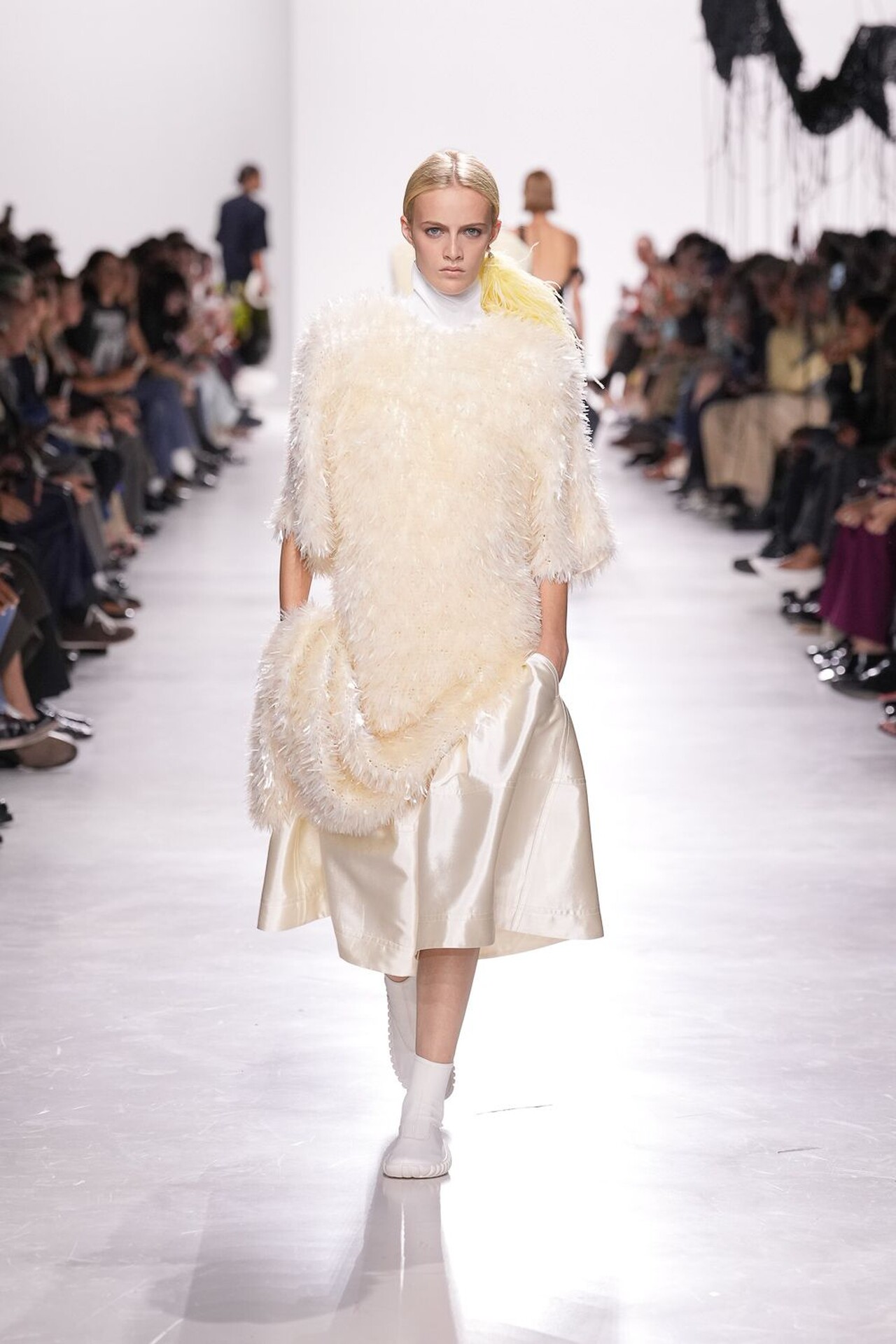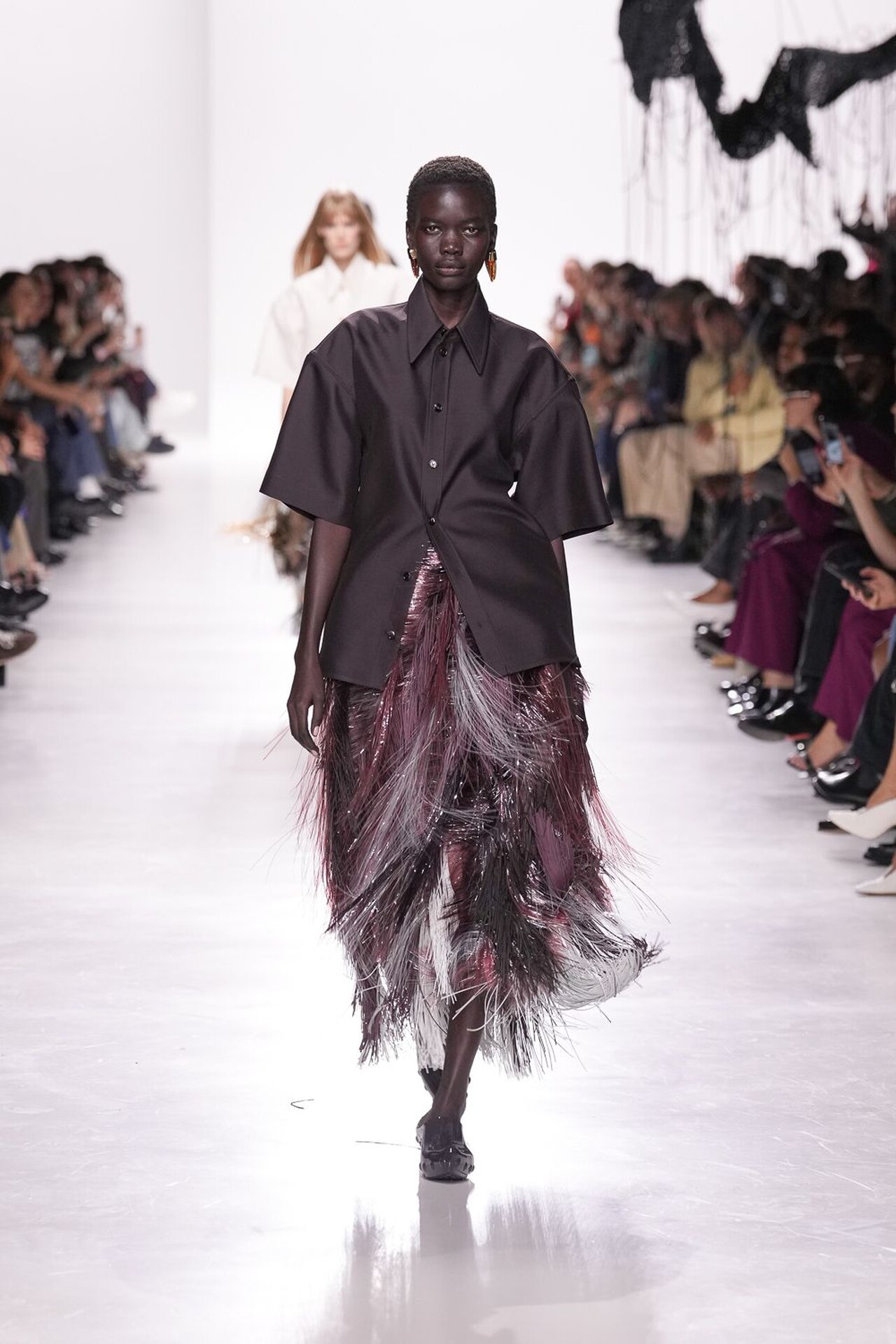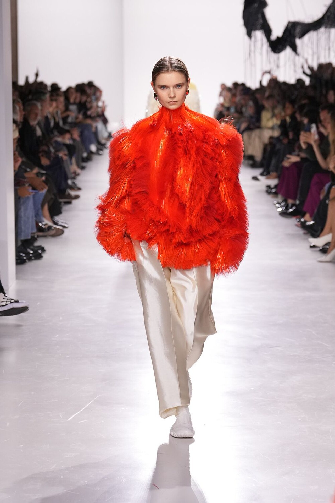 Kolekcija je definirana kretnjom, pogotovo u zaigranoj kombinaciji haljina i suknji. Suknja sastavljena od kožnatih traka stvarala je ritam pri svakom koraku, dok su haljine s mikro-naborima i resicama produživale liniju tijela. Najsitaknutiji komad kolekcije je definitivno pletivo izrađeno od recikliranih staklenih vlakana, u živahnim nijansama narančaste, crvene i srebrnoplave. Ti su komadi dokazali da esperimentiranje s materijalima može izazvati iznenađujuću eleganciju.