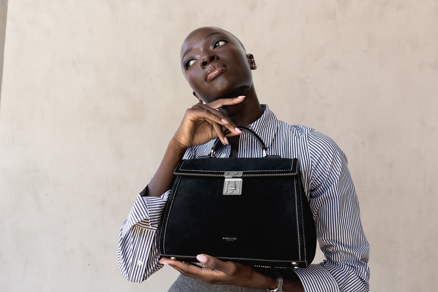 Model i aktivistica SouKeyna Diouf odabrala je strukturirani model Midi Paris, koji je prilagodila u crnoj brušenoj koži s ecru (svijetlim) šavovima. Riječ je o minimalističkom, ali upečatljivom komadu. Unutrašnjost od mekane pamučne podstave dovoljno je prostrana za sve svakodnevne potrepštine, a torba je elegantna i suptilna.