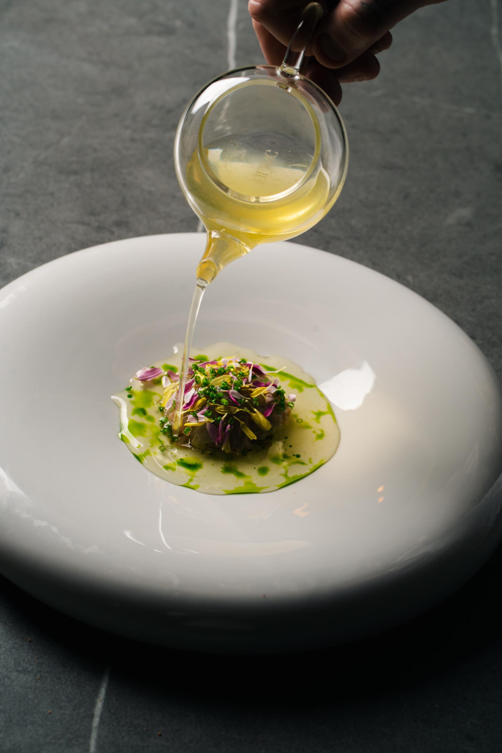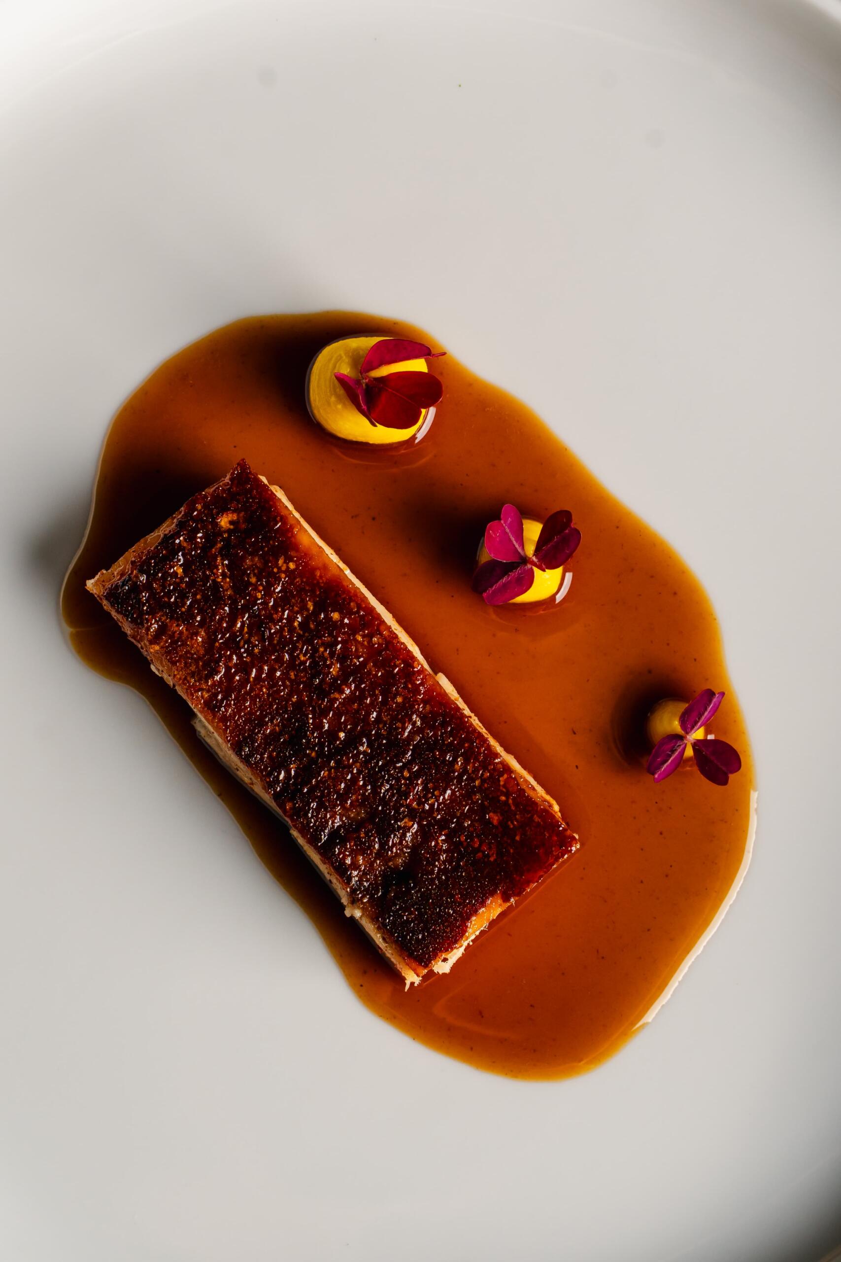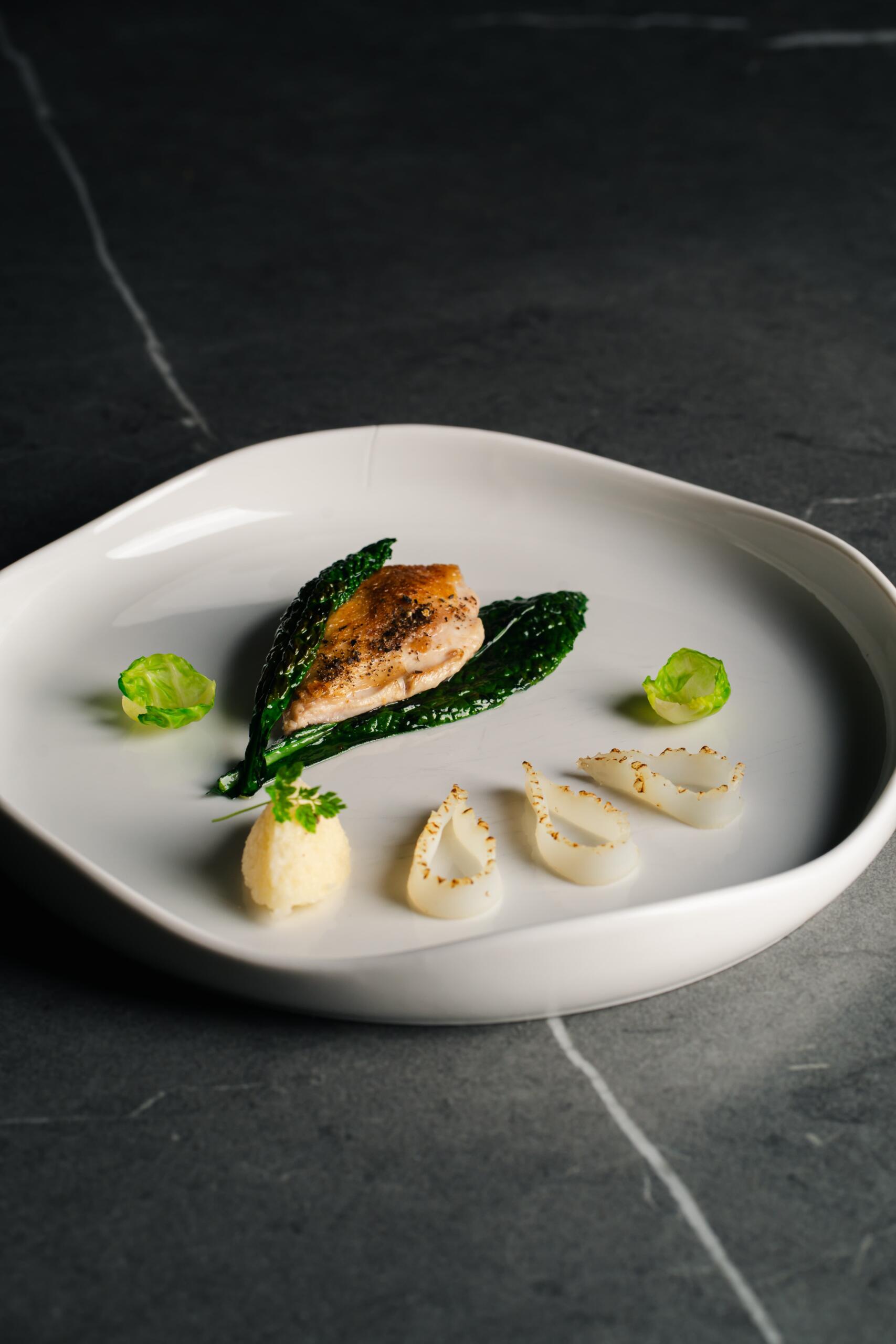 Dry-aged riba s mladim zimskim kupusom, consommé od pečene paprike i prženi pesto od začinskog bilja tek su uvod u jelovnik koji slavi jesen dok jadranska kozica s bučom i mandarinama samo nastavlja tu odu sezonalnosti. Pod nazivom “More i planine”, Bruno spaja nespojivo – prepelicu s roštilja s rezancima od sipe uz bogati jus.
