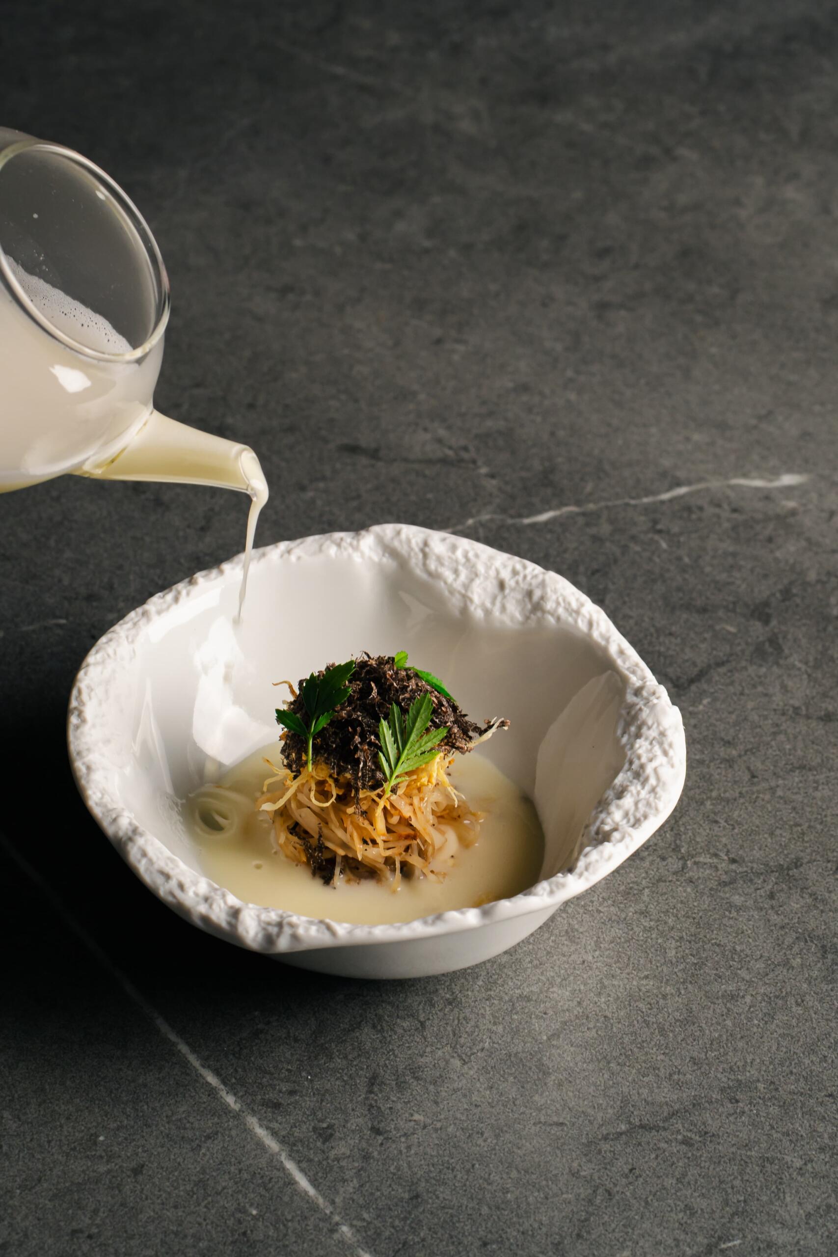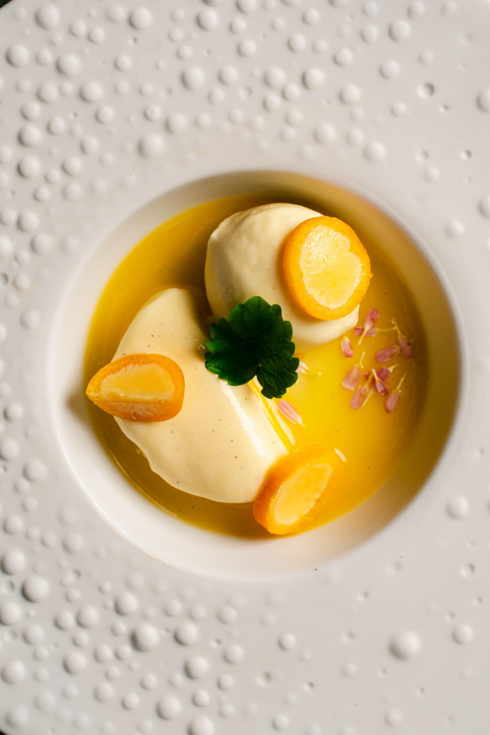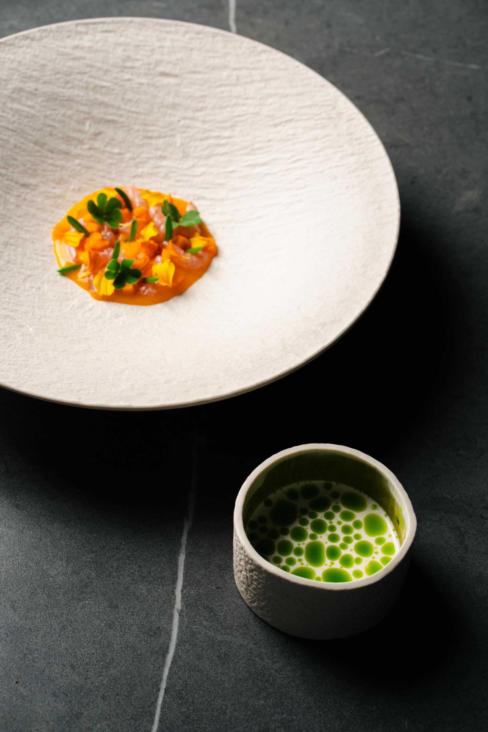 Dry-aged riba s mladim zimskim kupusom, consommé od pečene paprike i prženi pesto od začinskog bilja tek su uvod u jelovnik koji slavi jesen dok jadranska kozica s bučom i mandarinama samo nastavlja tu odu sezonalnosti. Pod nazivom “More i planine”, Bruno spaja nespojivo – prepelicu s roštilja s rezancima od sipe uz bogati jus.