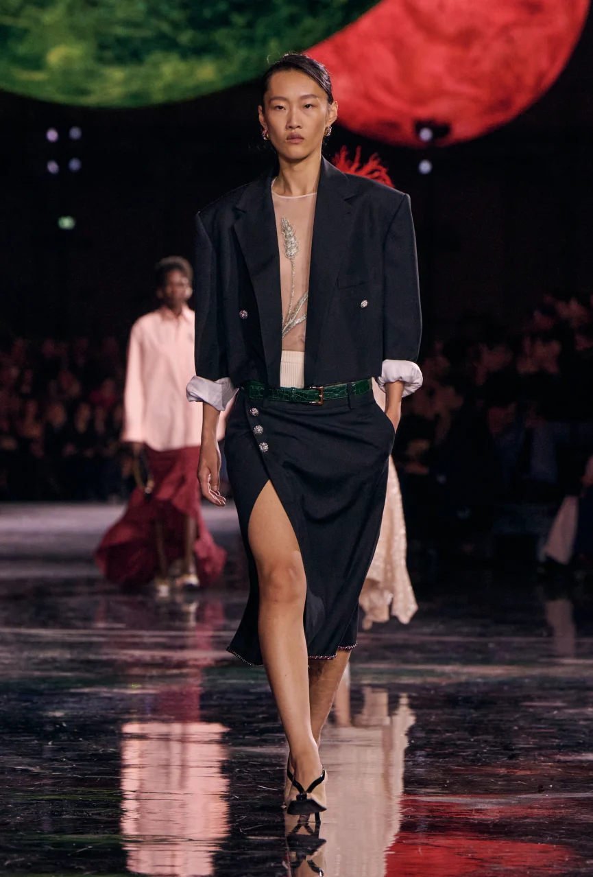 Ono čemu smo se najviše veselili ususret ove debitantske kolekcije, bilo je vidjeti kako će Blazy reinterpretirati prepoznatljive kostime od tvida. Dizajner ih je osmislio uz nove teksture i proporcije; neki su lookovi imali izdužene sakoe i nisko spuštene suknje. Blazy je time pokazao želju da Chanelovu eleganciju učini manje formalnom, a više suvremenom.