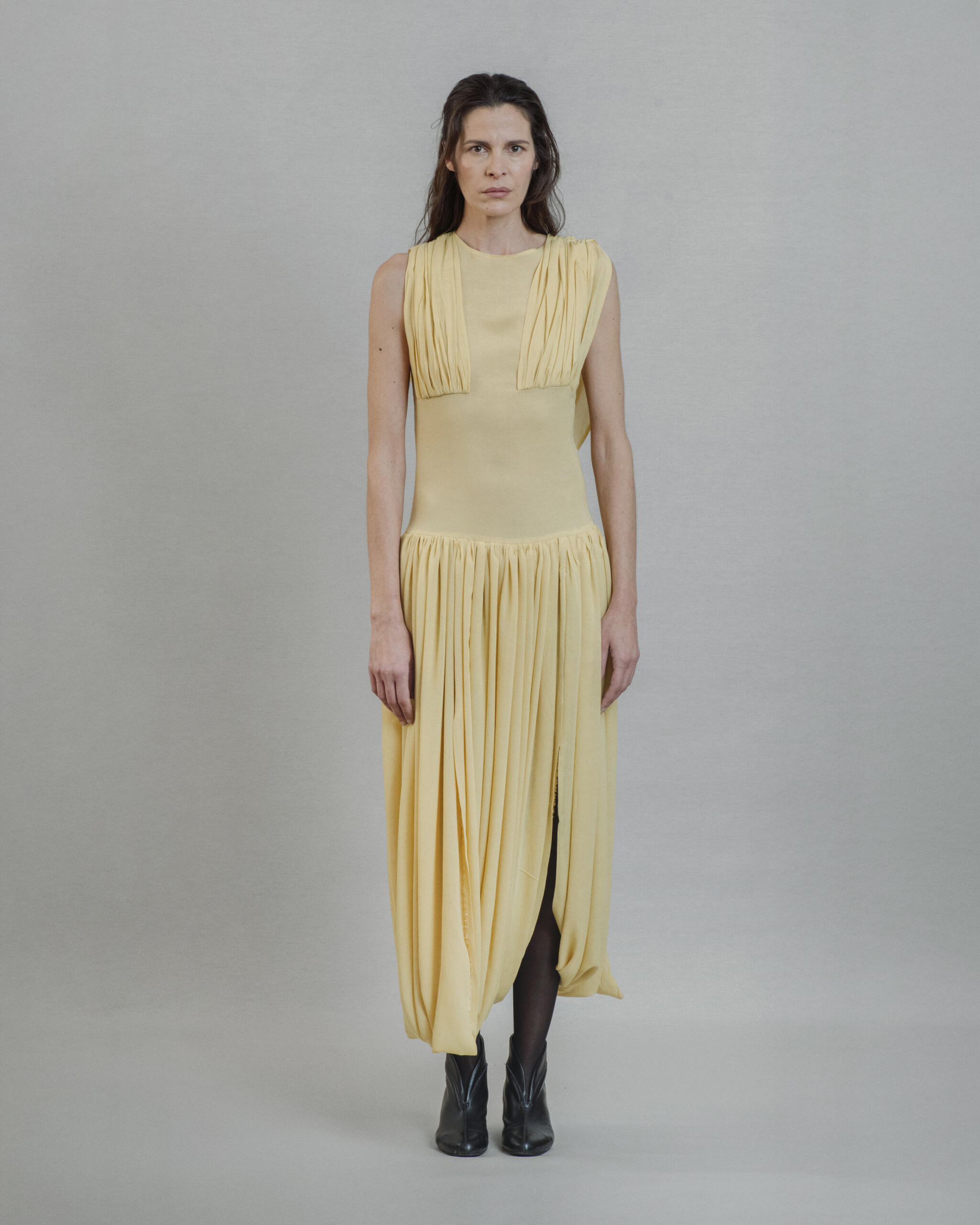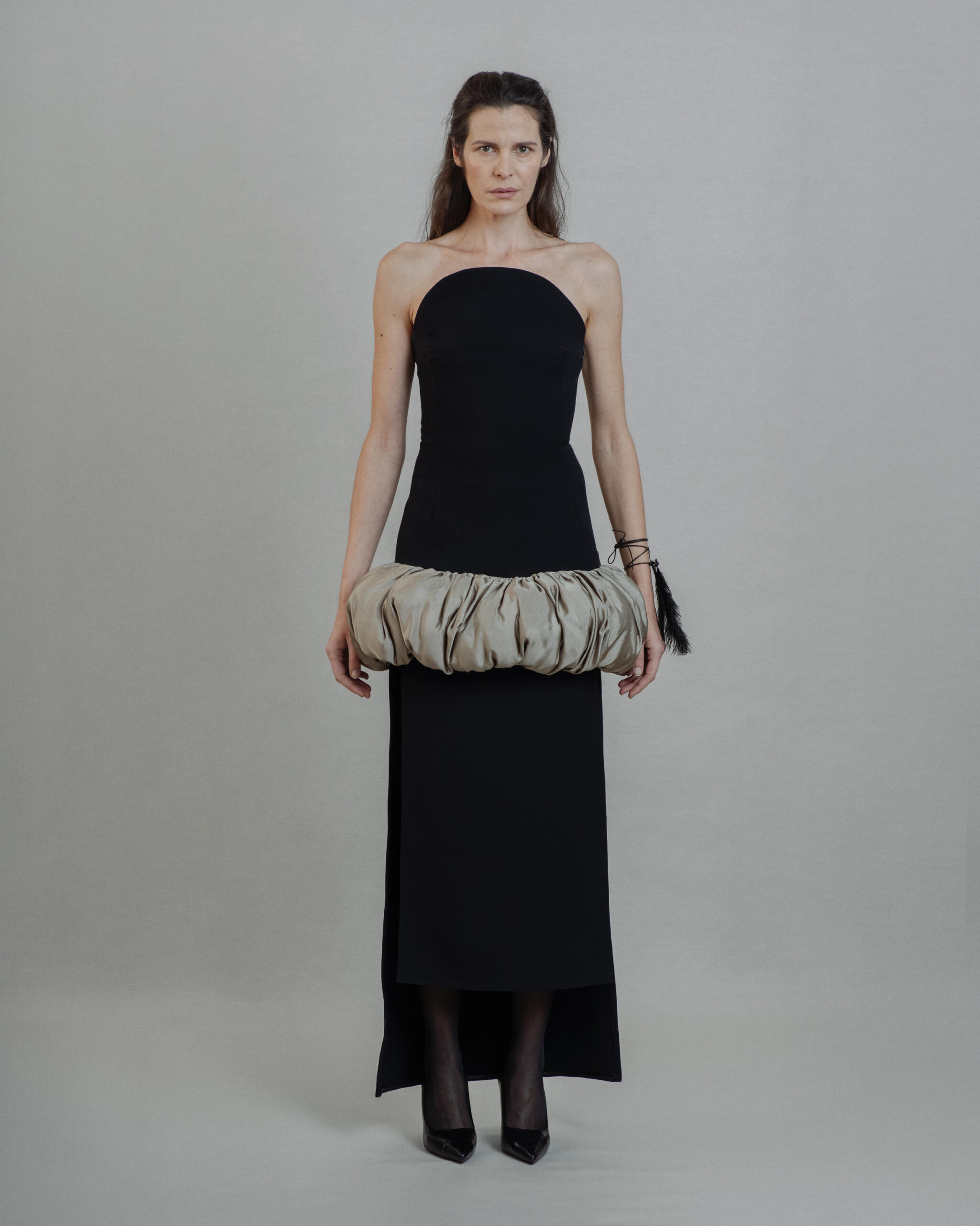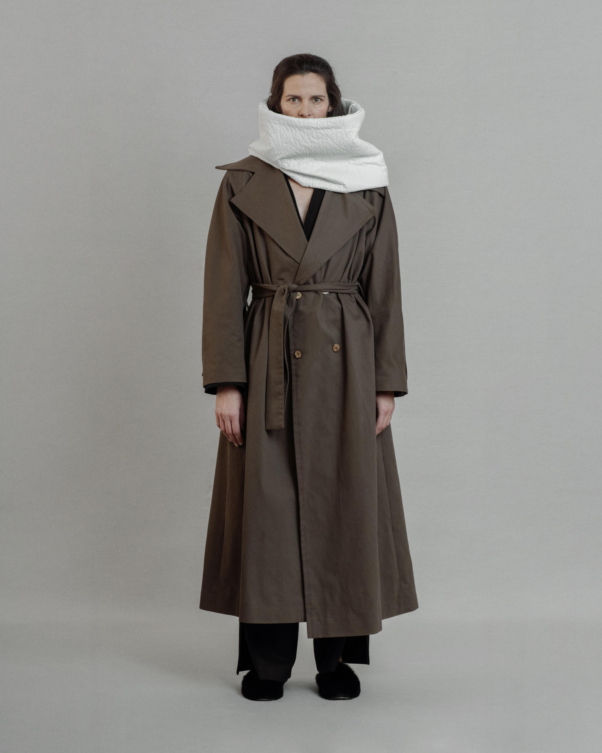 Kulušić posebno naglašava dualnost kao nit vodilju, kontrast nabrane i punjene strukture naspram ravnih, glatkih površina, ali i tradicionalno krojenih formi obogaćenih modernim, neočekivanim elementima. Riječ je o odjeći koja je praktična, no istovremeno drugačija, ona koja ostavlja dojam bez potrebe za glasnom gestom.