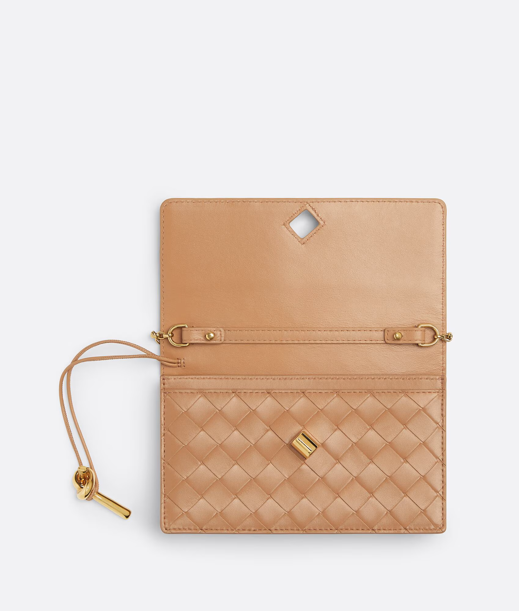 Mini torbica izrađena je od mekane nappa kože u prepoznatljivom intrecciato uzorku, a krasi je i kopča u obliku čvora svojstvena liniji Andiamo. Torbica je izrađena ručno u Italiji, ima jedan pretinac i zasad je verzija s atraktivnim lancem dostupna u dvije varijante – crnoj i bež boji.