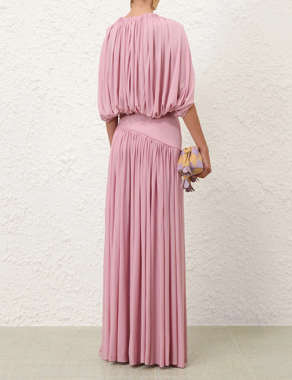 Ovaj outfit ne traži dodatna objašnjenja – dovoljno ga je samo pogledati i odmah postaje jasno da nosi onu rijetku kombinaciju elegancije, profinjenosti i odvažnosti. Upravo takav dojam ostavlja komplet koji smo otkrili u novoj kolekciji brenda Zimmermann, koji u popularnoj nijansi ove sezone – svijetloružičastoj, djeluje kao definicija modernog glamura.