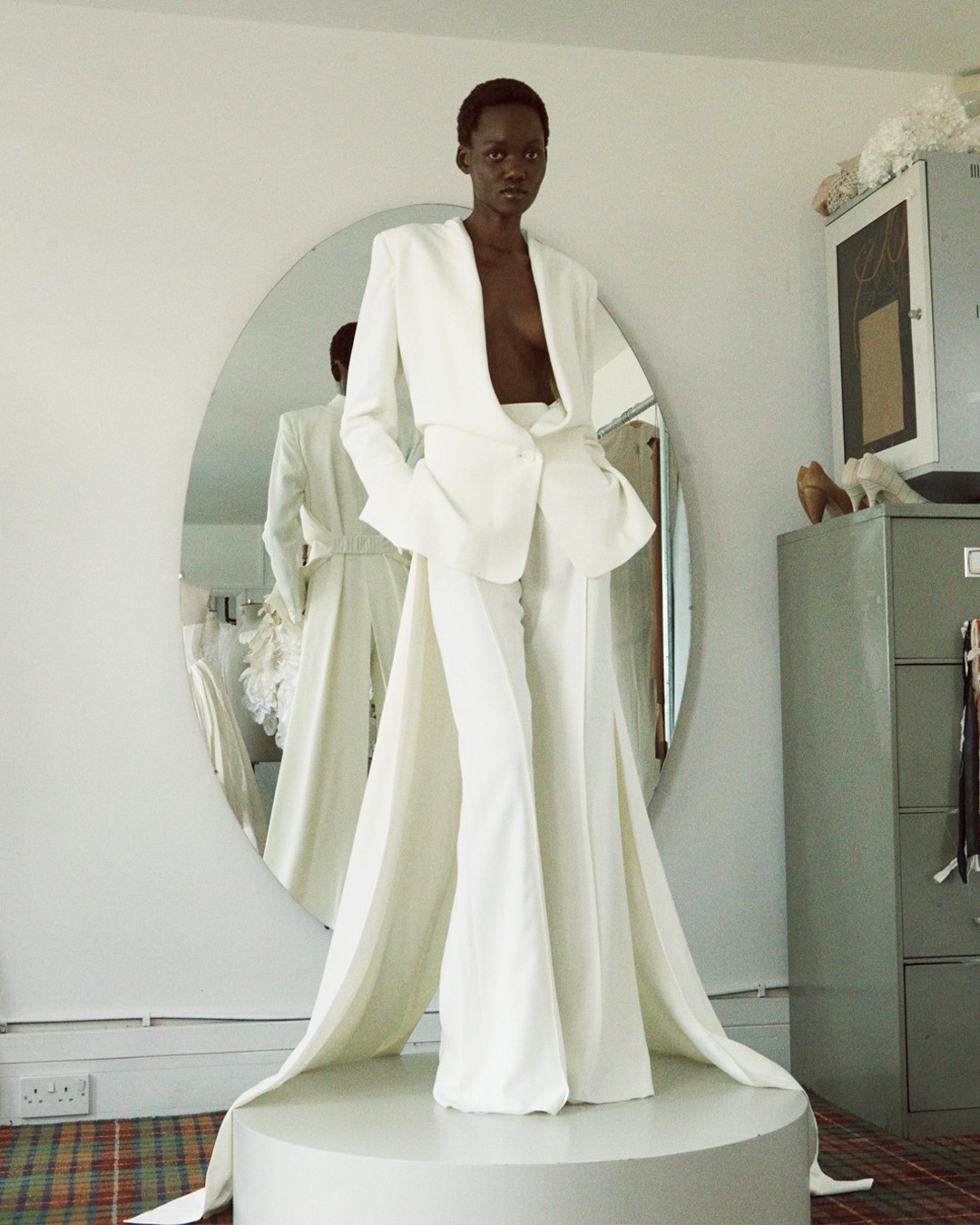 Kolekcija se sastoji od 21 kreacije, među kojima smo osim vjenčanica, primijetili i komplet od sakoa i hlača “Bonny”. Ovaj komplet reinterpretira tradicionalne krojeve sa skulpturalnom siluetom. Sako definira ramena i nježno se uvlači u struk i proteže se u dramatičan rep do poda, koji se može pustiti da leprša ili stilizirati na više načina. Sako je uparen sa širokim hlačama s dubokim prošivenim naborima, visokim strukom i diskretnim bočnim džepovima.