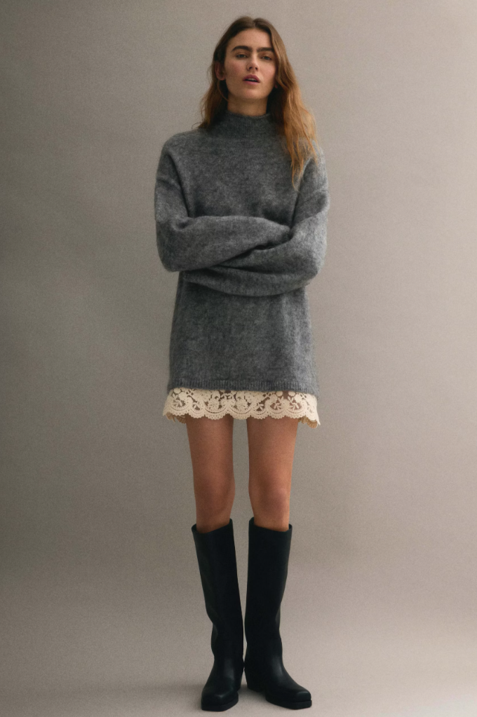 Ova mini haljina s detaljem čipke nosiva je u pregršt prigoda i kao pulover te je odličan multifunkcionalni ulov za izgledati chic i tijekom hladnijih dana. Osim toga, zbog širokog kroja, iznimno je udobna za nošenje. Cijena haljine iznosi 79,99 eura, a dostupna je za kupnju putem službene stranice high street brenda i u dućanima.