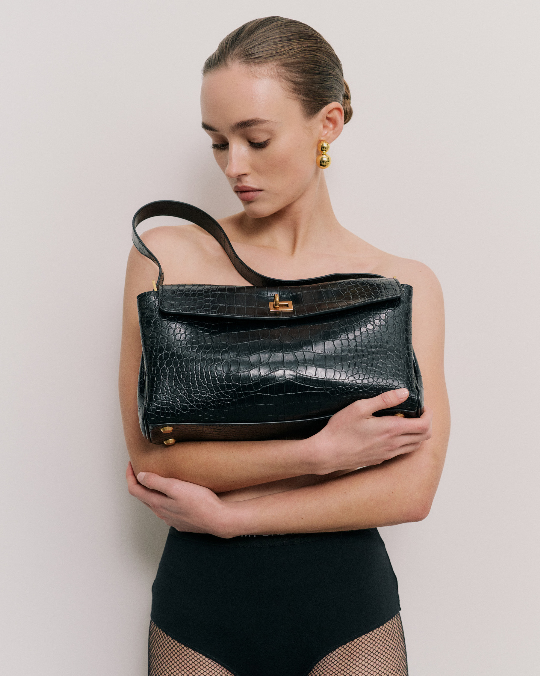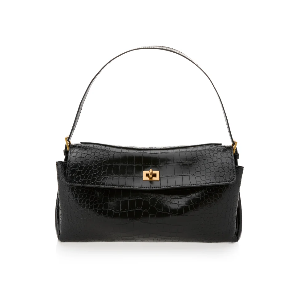 Suptilan sjaj kože s krokodilskim uzorkom i metalni detalji zlatnog sjaja ono su zbog čega ovaj model privlači pažnju na prvu, i zbog čega ga vrlo lako možete zamijeniti s kreacijom neke renomirane modne kuće.