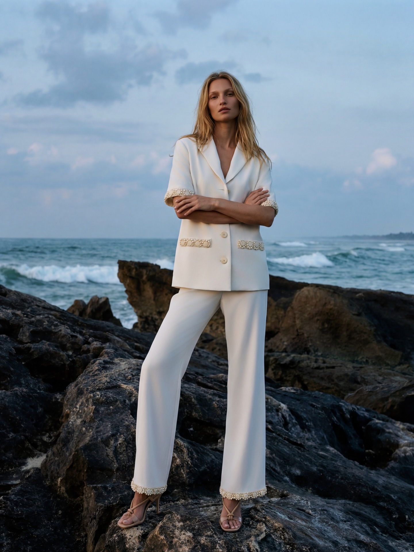 Ono što nas je najviše privuklo za ovaj komplet su detalji perlica u obliku cvijeta koji se nalaze na rukavima, na rubu košulje te na rubu hlača. Koliko god komplet izgledao jednostavno, odiše sofistiranošću i izgleda luksuzno te je baš iz tog razloga odlična kombinacija za nadolazeće tople dane.