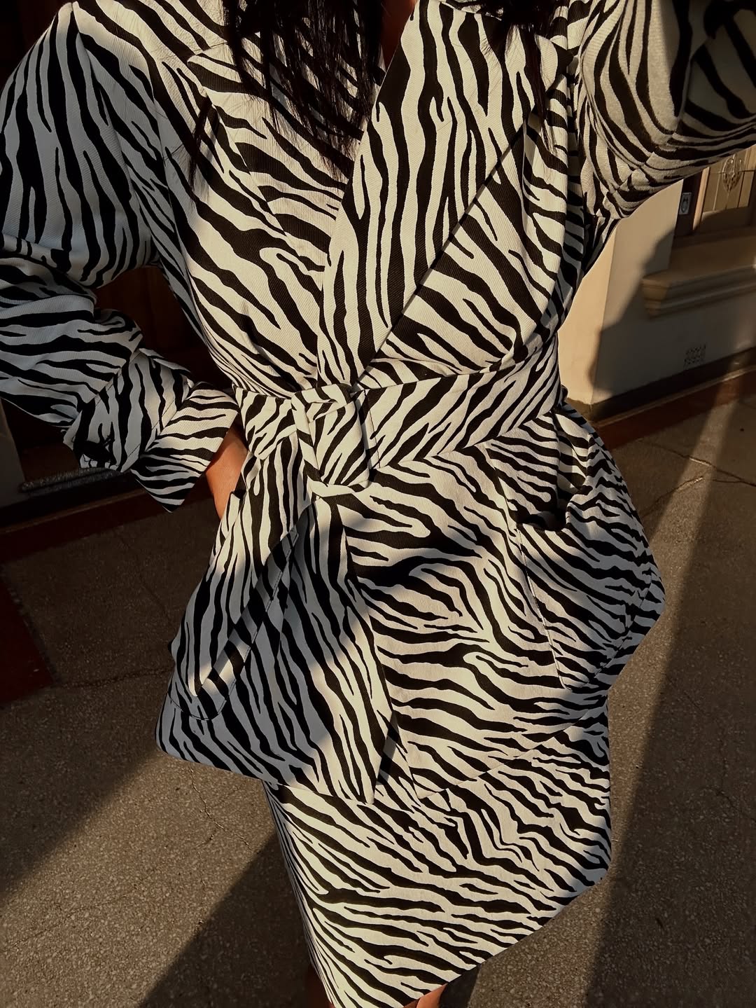 Postoje komadi koji su trendovski, imaju kratkotrajan “wow” efekt, kao i oni koji ostavljaju dugotrajan dojam. Ovaj zebra komplet brenda Avry James Label definitivno pripada ovoj drugoj kategoriji. Na prvu upečatljiv, ali istovremeno nevjerojatno nosiv, ovaj komplet pokazuje kako životinjski uzorak može izgledati sofisticirano, moderno i – chic.