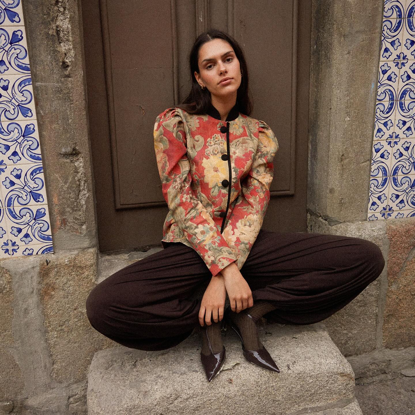 Sako pod nazivom Filipa privukao nam je pažnju zbog raskošnog uzorka i kontrastnih poruba i gumbiju. Sako je ručno izrađen u Španjolskoj i napravljen je od 100-postotnog pamuka. Inspiriran je vintage kreacijama, pa ga zato krasi raskošan cvjetni uzorak u toplim nijansama crvene, žute i zelene, što dodatno doprinosi retro izgledu.