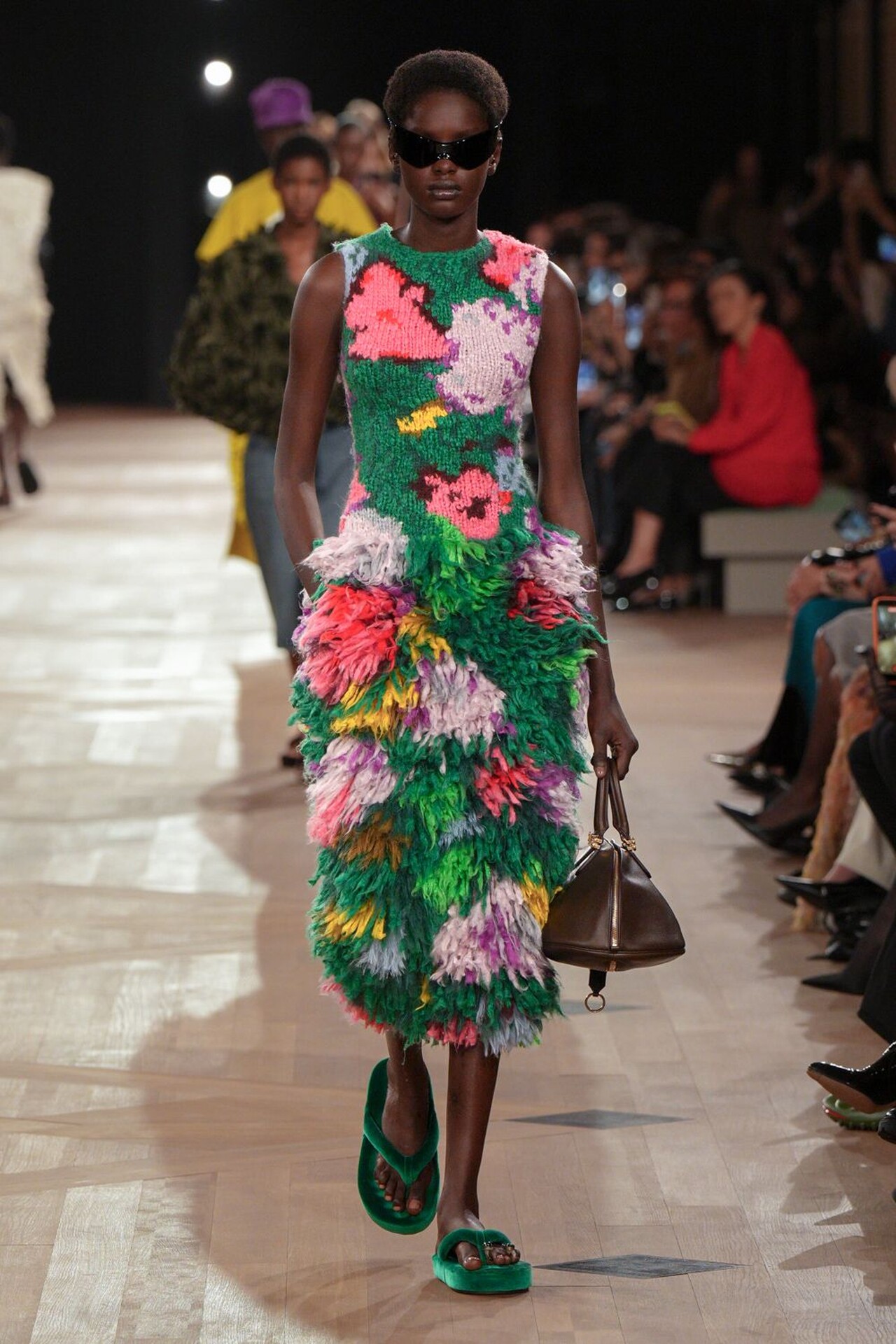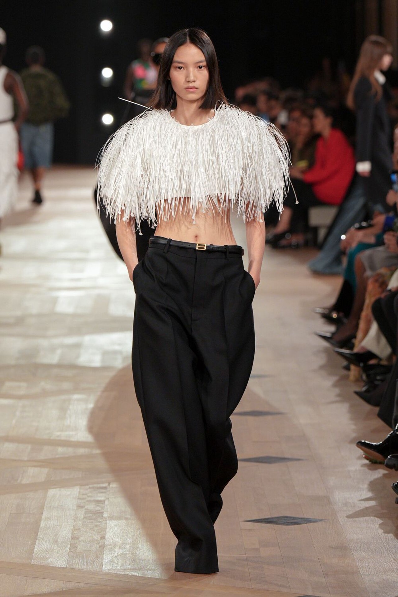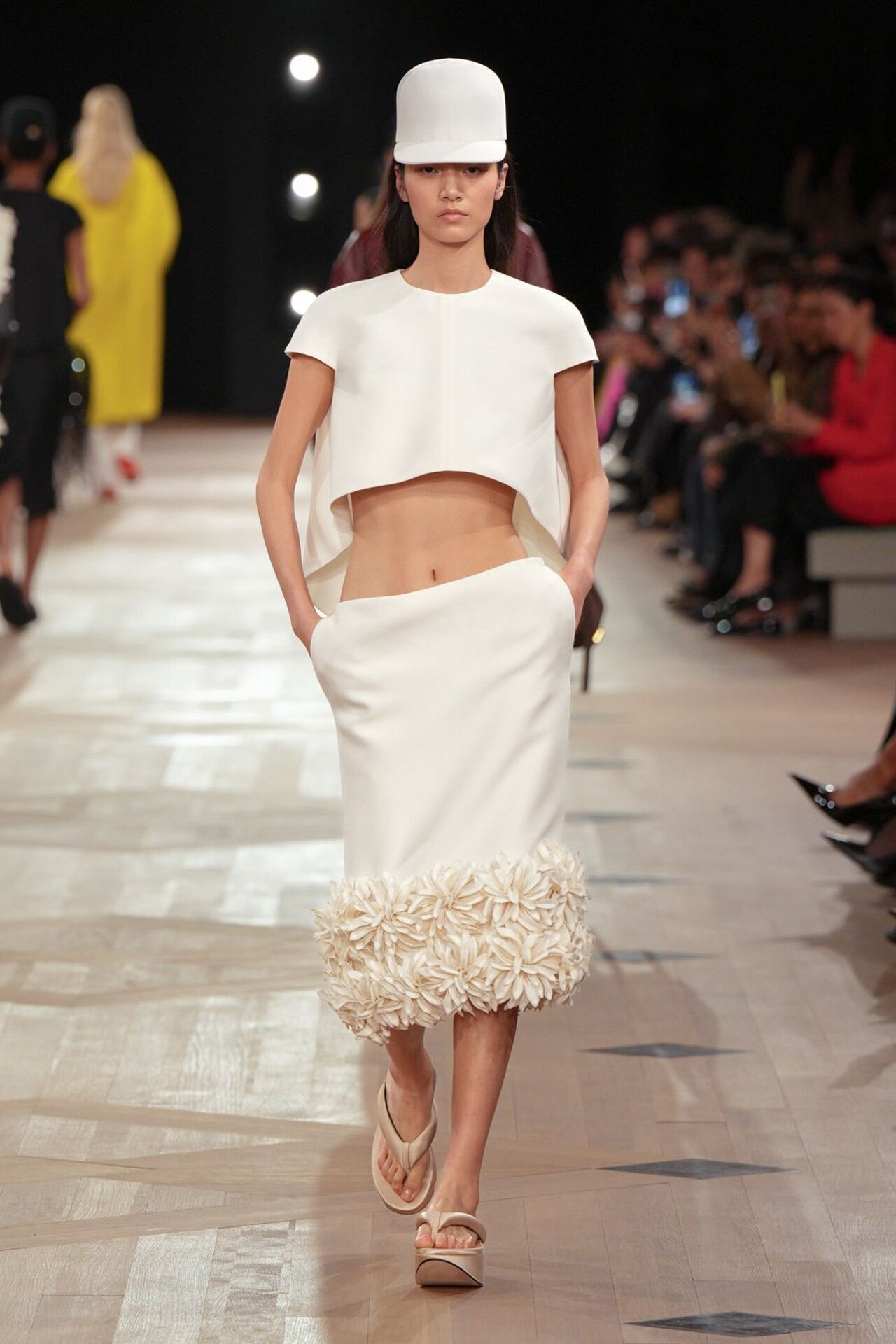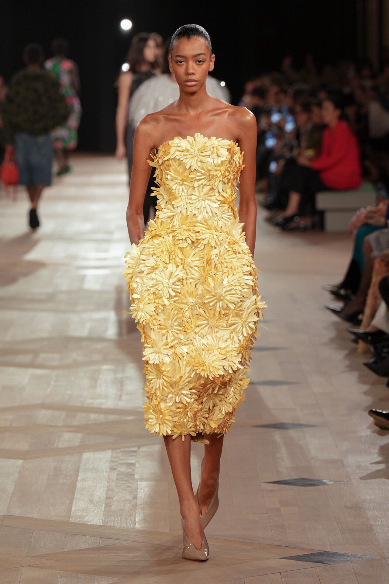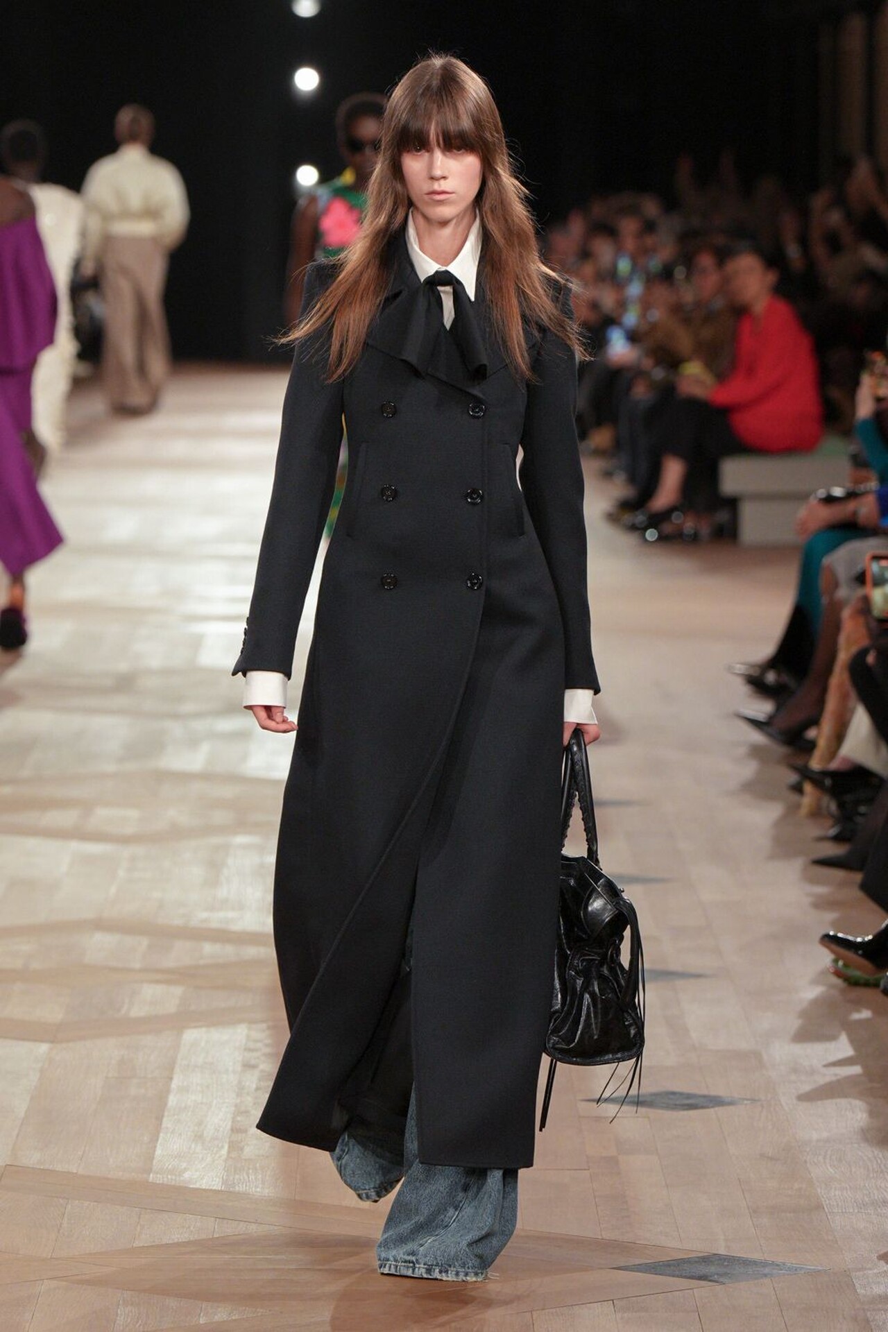 Prvi look — duga crna večernja haljina s V-izrezom, nošena uz bijele rukavice i goleme crne sunčane naočale — djelovao je kao istovremeno hommage, koliko i novi smjer. U tom looku ne samo da smo gledali Cristóbala Balenciagu, već i Picciolijeve druge prethodnike poput Nicolasa Ghesquièreja do avangardne estetike u posljednjih nekoliko godina.