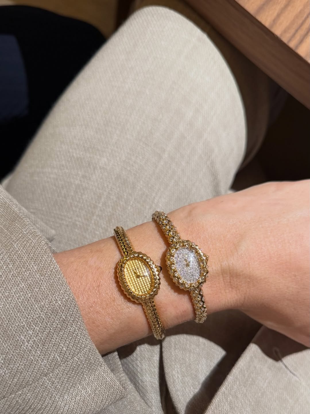 U novoj kolekcije nalaze se dvije verzije izrađene od žutog zlata. Prva, ona pročišćenijeg dizajna, stavlja naglasak na samu strukturu uzorka Clou de Paris, dopuštajući da tekstura govori sama za sebe. Druga verzija ide korak dalje – ukrašena je s čak 271 dijamantnom briljatnog reza, od čega se 171 nalazi na kućištu i narukvici, dok ih je 100 raspoređeno po brojčaniku u sofisticiranoj “snow-set” tehnici. Rezultat je sat koji balansira između funkcionalnosti i luksuznog nakita na razini couturea.