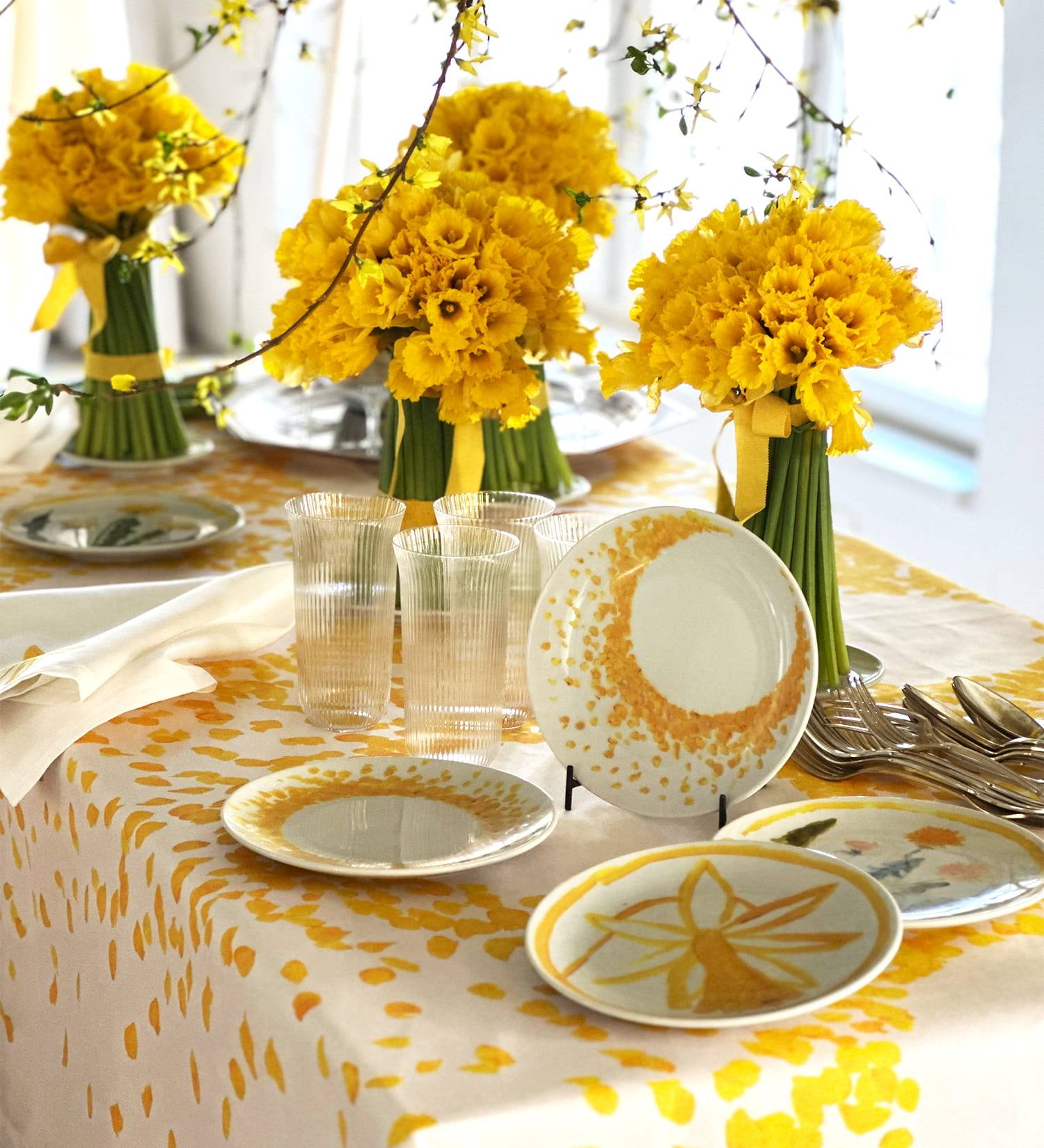 Ovi komadi kao da su stvoreni za proljetne i ljetne trenutke – za stolove na terasi, ručkove u vrtu, večere koje se spontano pretvore u duga druženja i razgovore. Cvjetni motivi i tople nijanse žute stvaraju atmosferu zbog koje stol postaje središte doma i mjesto gdje nastaju najljepši trenuci.